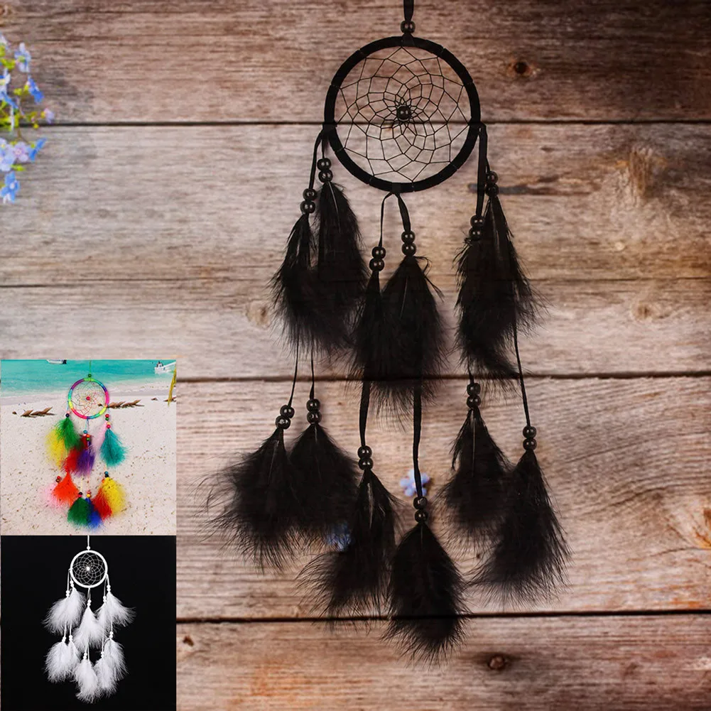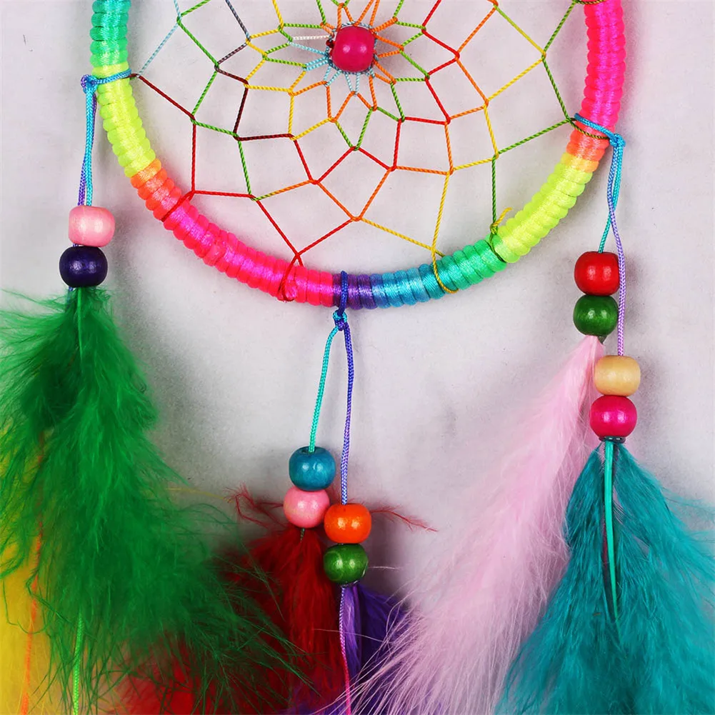 Радужный красочный Ловец снов индийские бусины перо украшение для к...