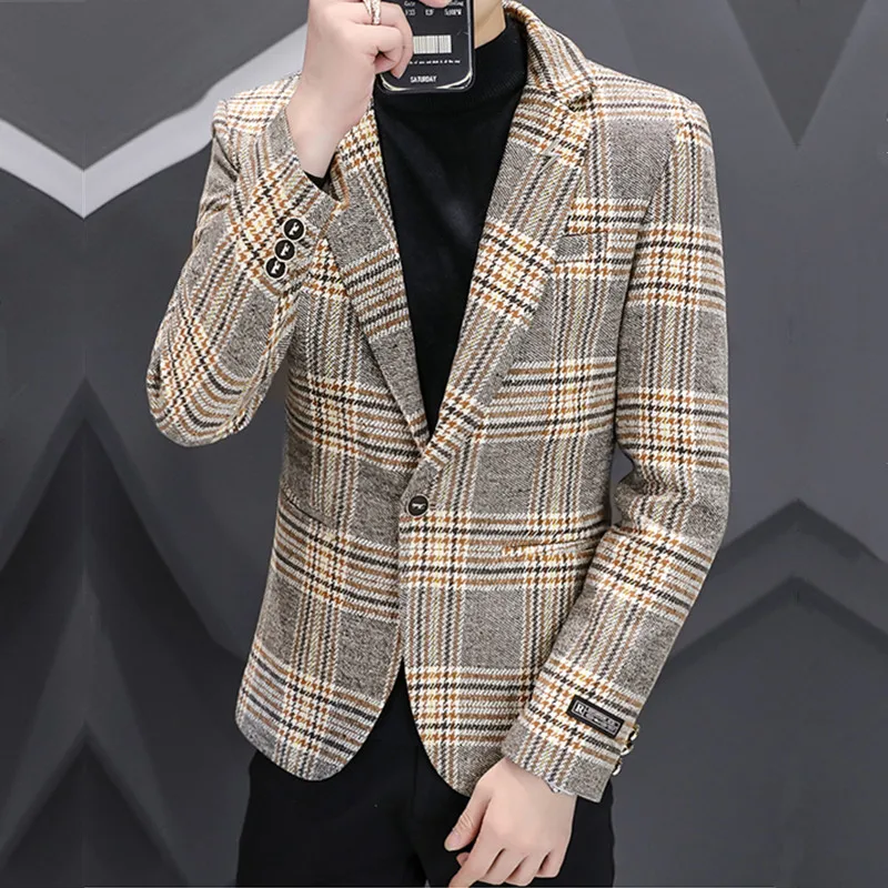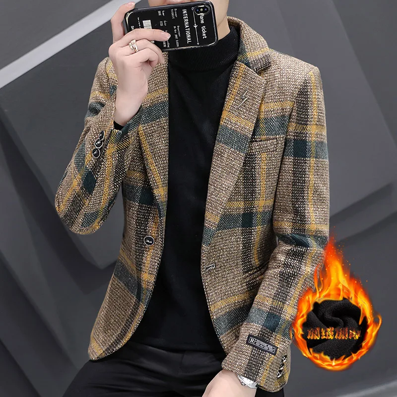 Мужской зеленый, черный, хаки шерстяной Блейзер, мужской высококачественный осенне-зимний костюм на одной пуговице, мужской пиджак, пальто, модель 2022 года