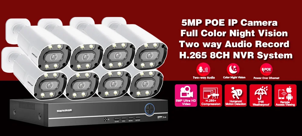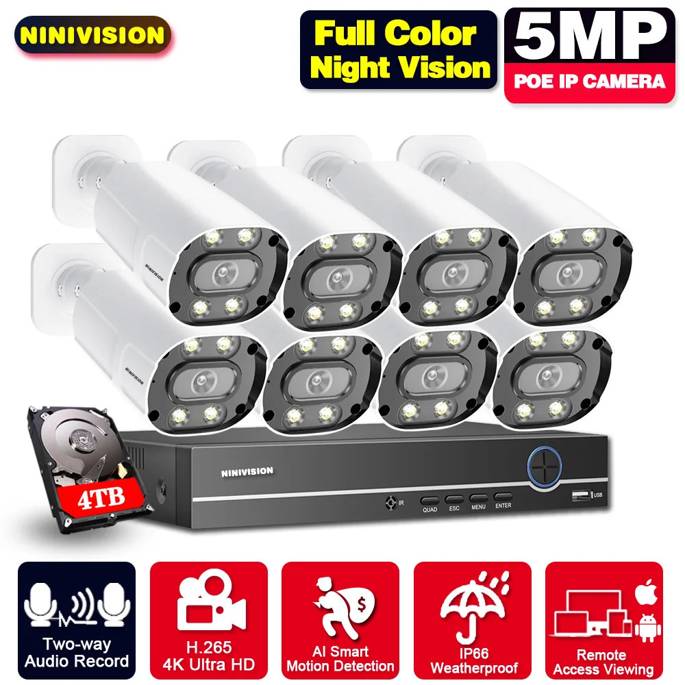 1. Ультра HD 4K дисплей высокой четкости, NVR может поддерживать 8 МП и 4K max, вы можете подключить 720p,1080p,3mp,4mp ,5mp, камеры 8mp & 4k с нашим POE NVR;2. Ультра HD 5MP POE ip-камера, металлический материал, IP66 водонепроницаемый, подходит для внутреннего и наружного использования, надежная Домашняя безопасность;3. Наш NVR поддерживает распознавание лиц, воспроизведение лиц, обеспечивает ультра высокое разрешение видео наблюдения, обеспечивая максимальную детализацию и четкость в наличии;4. Наш NVR и камеры поддерживают расширенное H.265 Сжатие видео, питание через Ethernet, подключи и работай, прост в использовании;5. Все камеры встроены в микрофон и динамик, Поддержка двусторонней аудиозаписи;6. Все камеры поддерживают Ultra HD Full Color Day Night Vision;7. Поддержка обнаружения движения, оповещения по электронной почте, воспроизведения видео и многоязычности;8. Поддержка Android,Iphone,Ipad,PC,VMS,P2P view;9. Удаленный доступ в любом месте, в любое время;