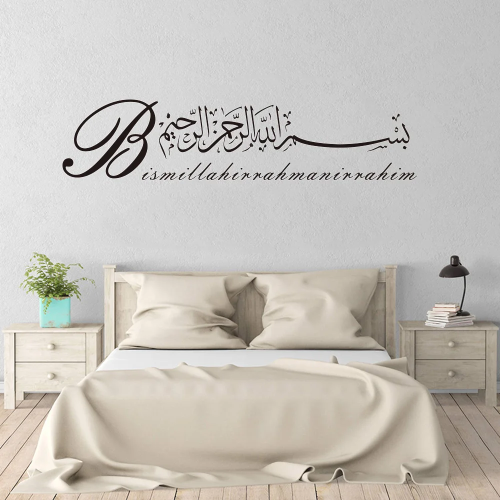 Наклейка на стену большого размера, Арабская мусульманская каллиграфия, гостиная, спальня, мусульманская религия, настенная наклейка