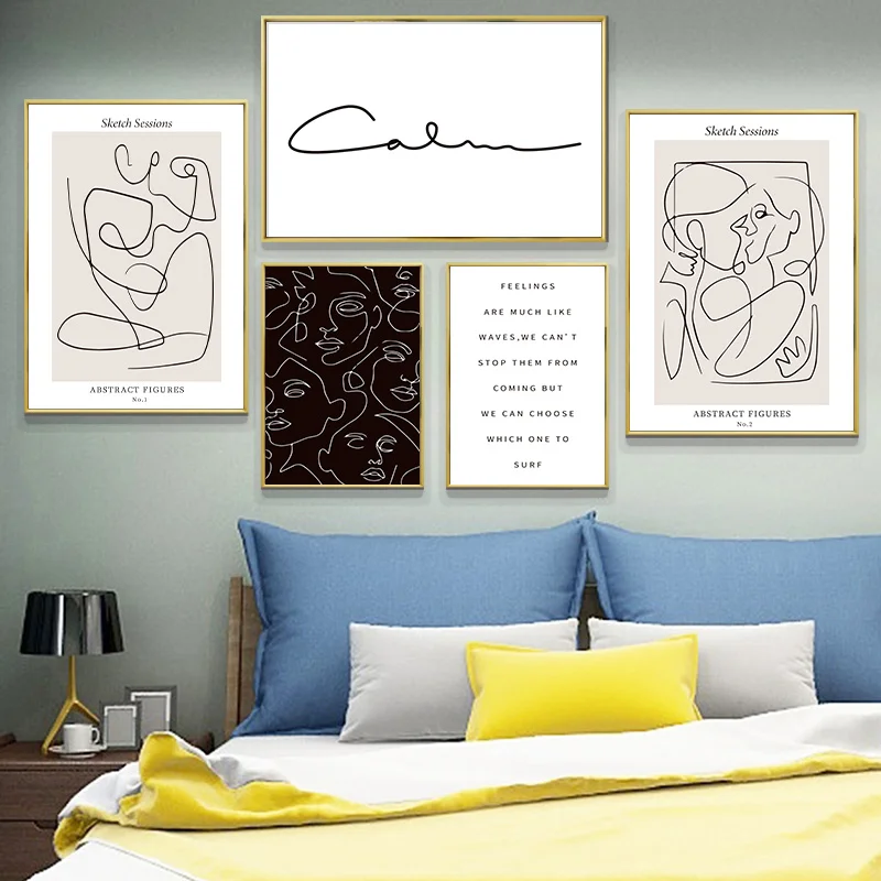 Абстрактный пара любовь рисунок художественные плакаты и принты Nordic стены искусства холст для живописи минималистский линии маслом картины дома Декор для дома