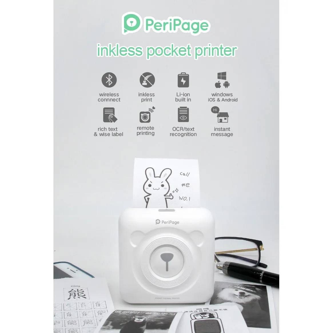 Напечатать все, что вы хотите Печать всего, что вам нравится: Поддержка нескольких функций, он может печатать фотографии, этикетки, сообщения, списки, записи, qr-код, веб-печать и так далее. Приложение предлагает различные шрифты и темы, чтобы сделать ваши фотографии стильными. Использование термопечати, что означает, что не нужно никаких чернил для печати! Совместимость со всеми смартфонами на рынке! Компьютеры также могут быть подключены к печати.