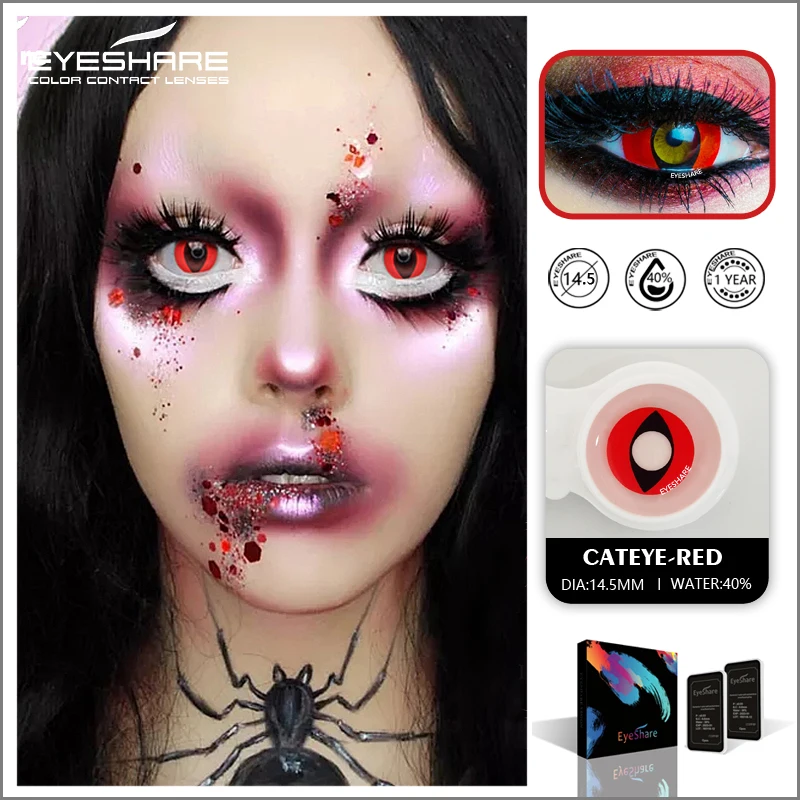 EYESHARE Cosplay Аниме контактные линзы для глаз 1 пара контактных линз кошачий глаз для глаз Хэллоуин красные цветные линзы для макияжа глаз на Хэллоуин