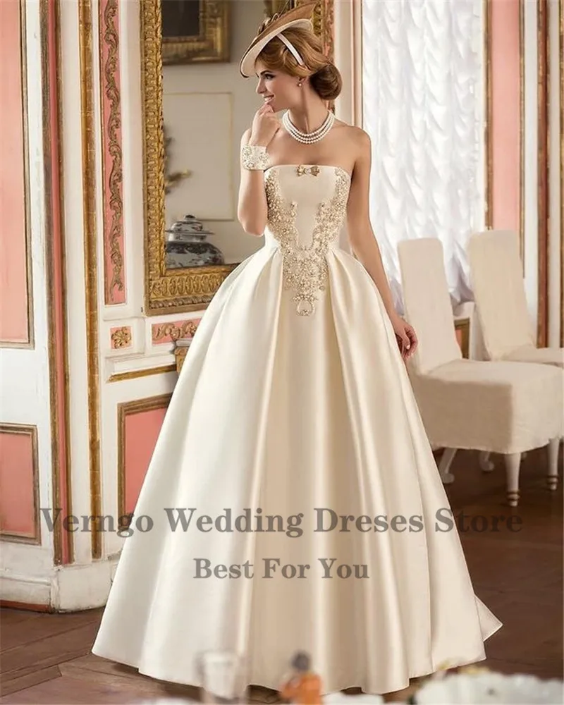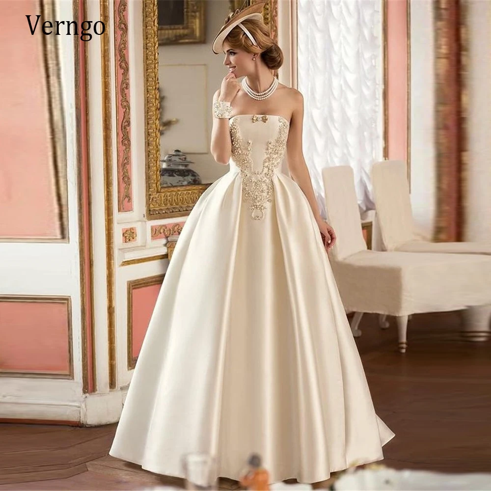 Атласное свадебное платье-трапеция Verngo, винтажное шелковое платье цвета слоновой кости, без бретелек, с нежными бусинами и жемчугом, индивидуальный пошив, 2021