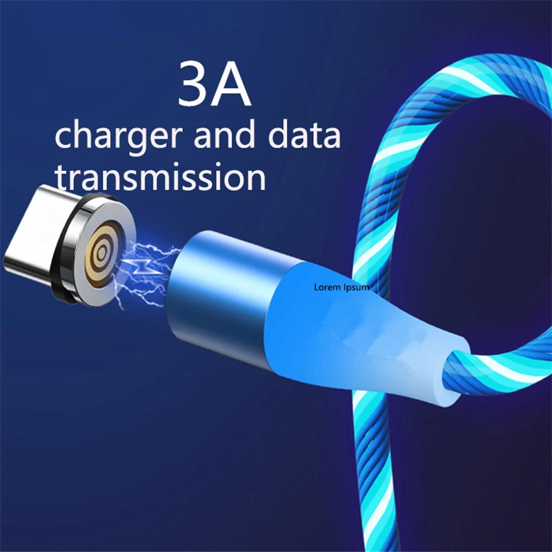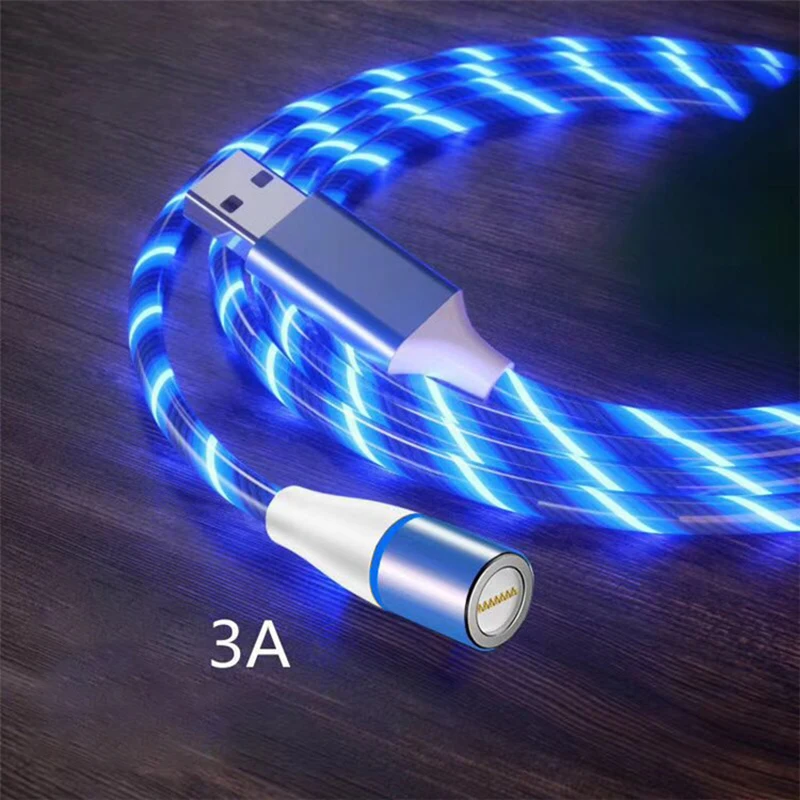 3A быстрой зарядки свечение светодиодного освещения Магнитный кабель с разъемом USB Type-C Магнитный кабель Micro USB зарядного устройства в оплетке для iPhone Huawei