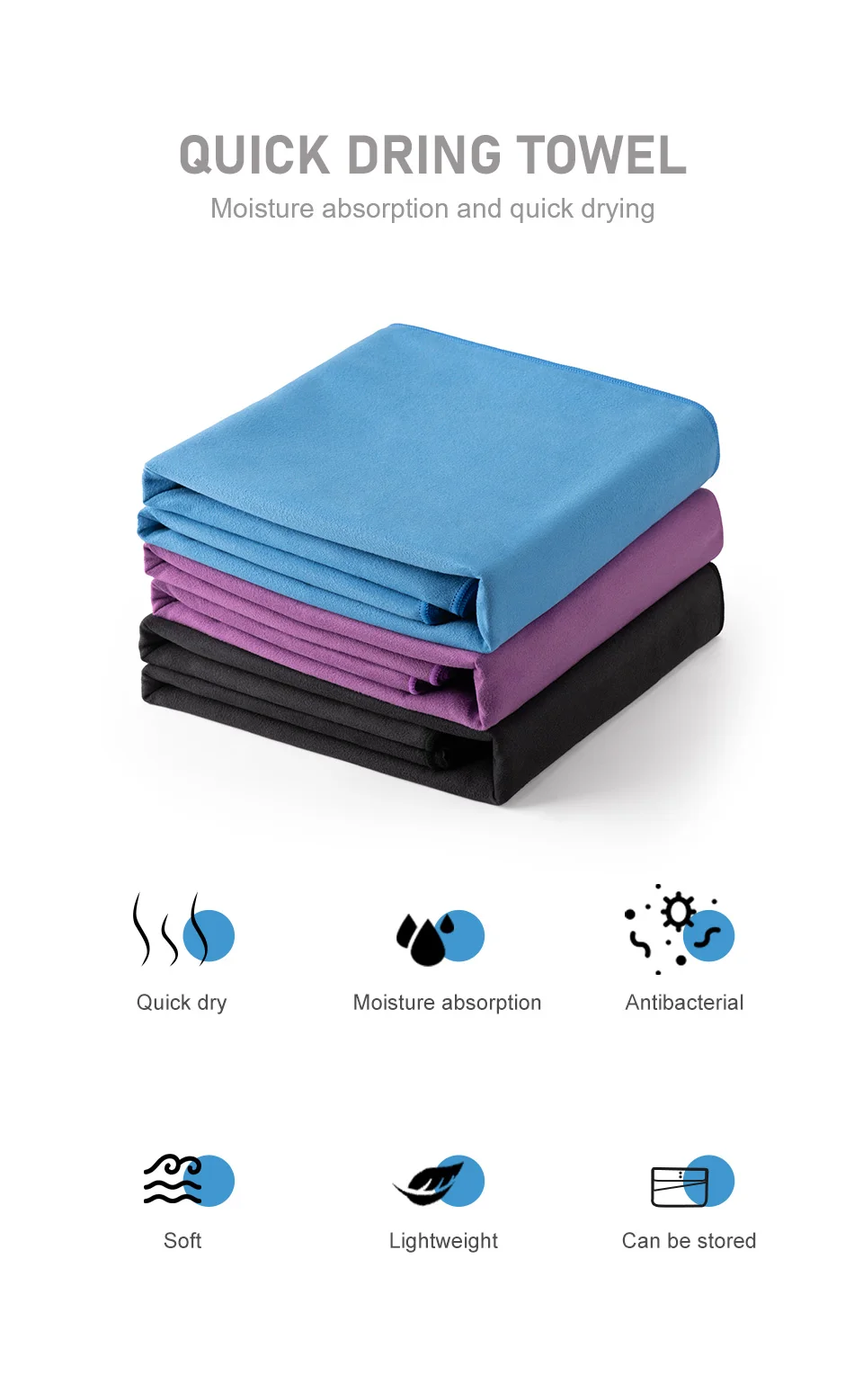 Быстросохнущее сверхлегкое банное полотенце из микрофибры, 1 шт.