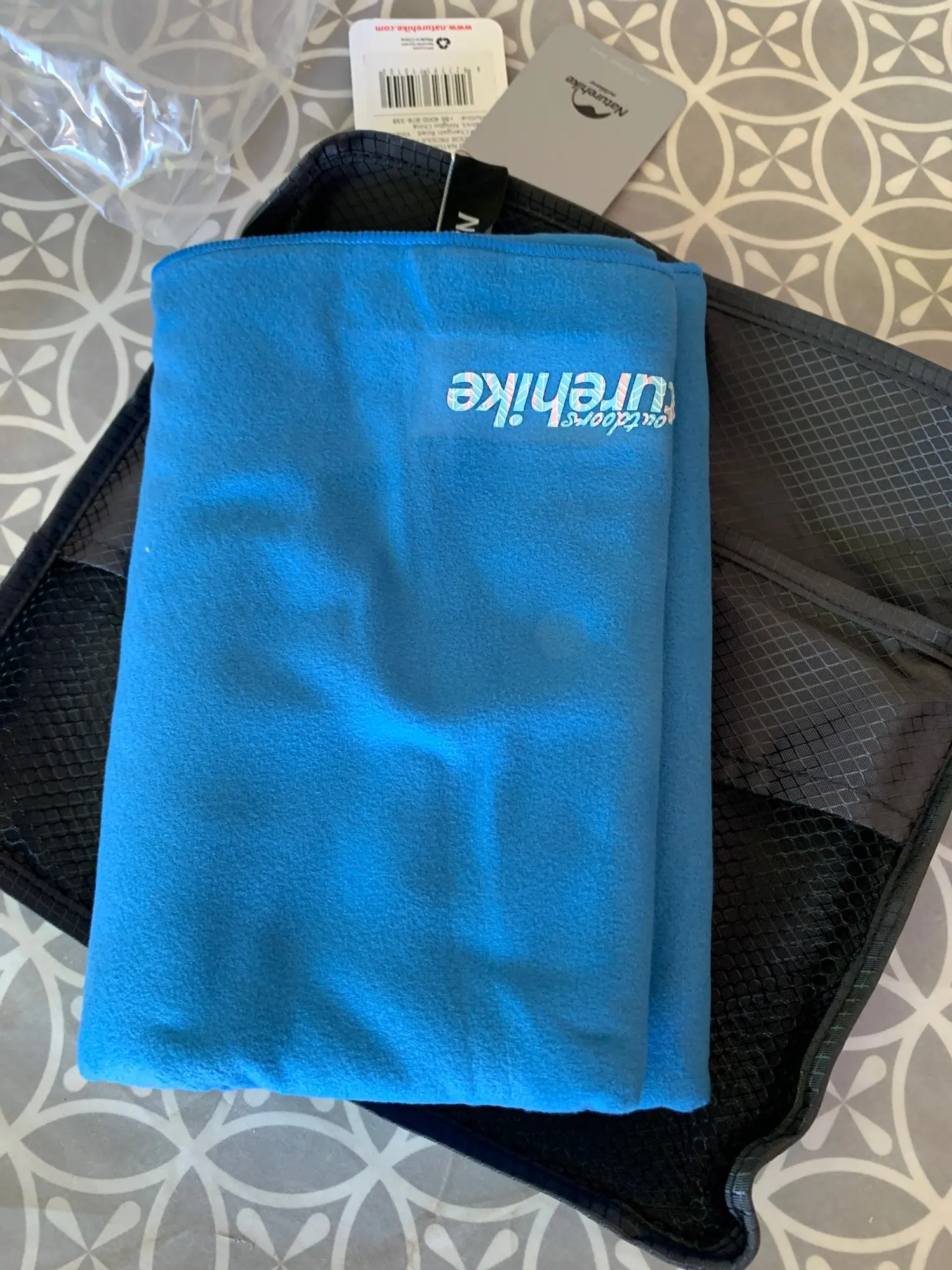 Супер полотенце. Доехал за 3 недели до Московской области. У нас есть такое же маленькое (покупали в России), это по качеству точно такое же, только большое. Есть чехол для переноски/перевозки. Планируем брать в бассейн и на море. На фото висит на двери для наглядности.
