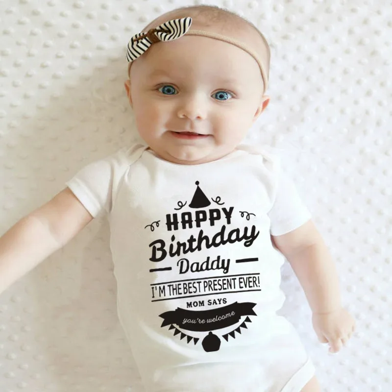 Детские комбинезоны на день рождения с принтом папы, хлопковые Боди для младенцев, одежда с коротким рукавом, детский комбинезон, одежда для маленьких мальчиков и девочек, 2021