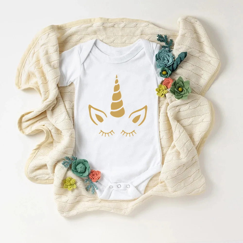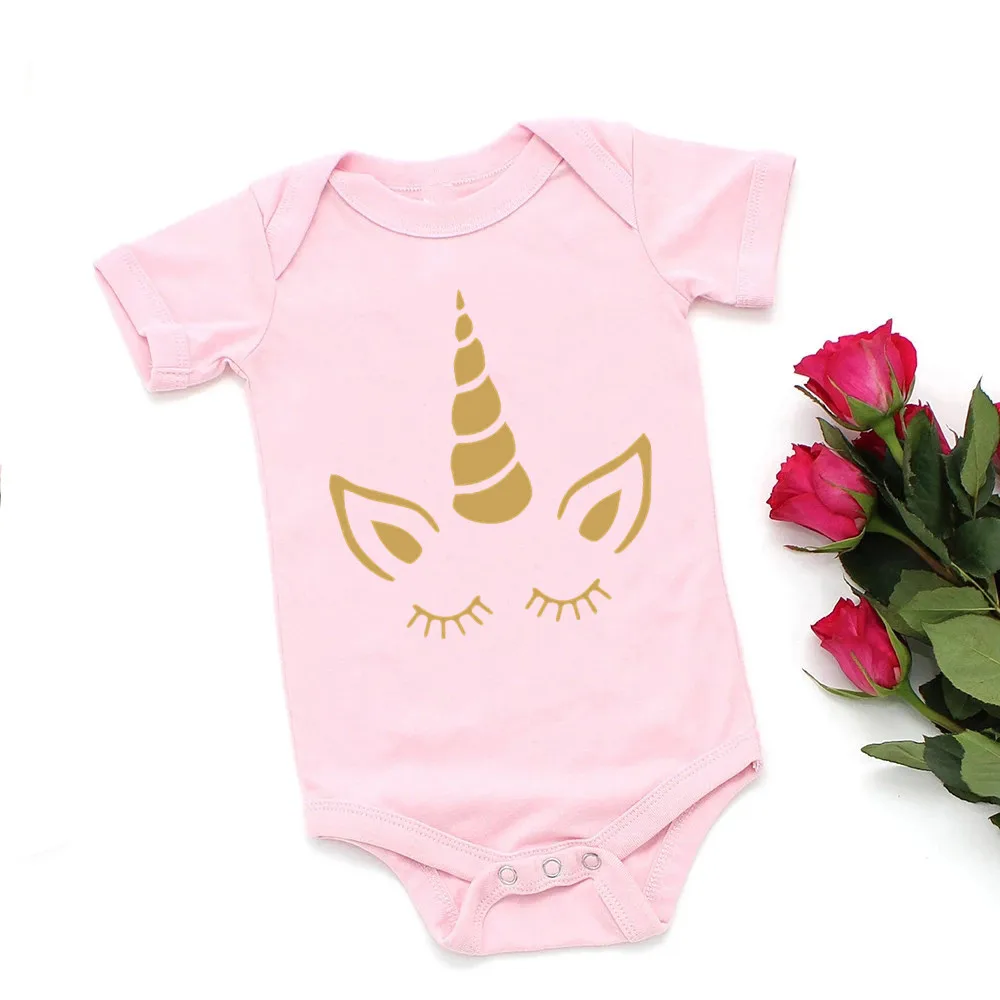2021 милый Единорог Детские ползунки с рисунком с короткими рукавами; Летняя одежда для малышей, из хлопка, для маленьких девочек и мальчиков костюм комбинезоны для новорожденных