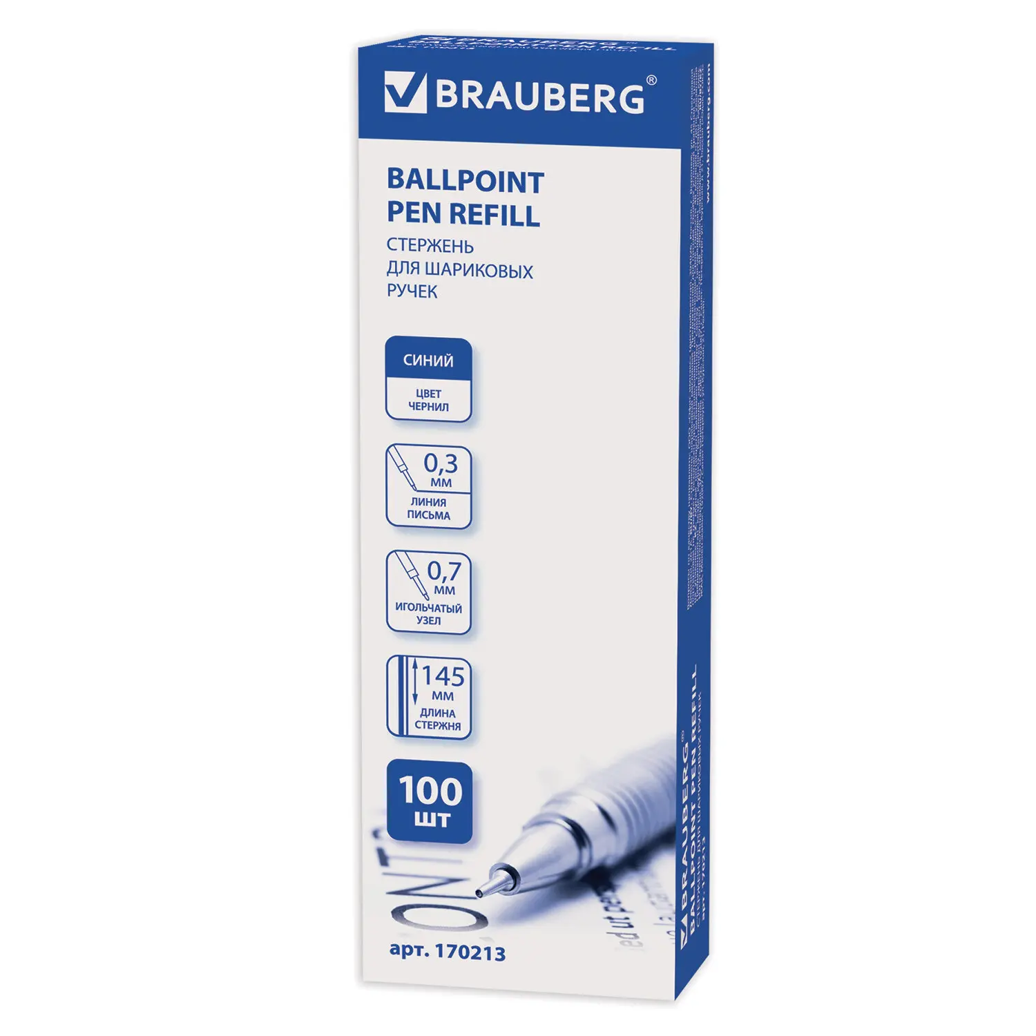 Стержень шариковый масляный BRAUBERG, 145 мм, СИНИЙ, игольчатый узел 0,7 мм, линия письма 0,3 мм, 170213 (100 шт)