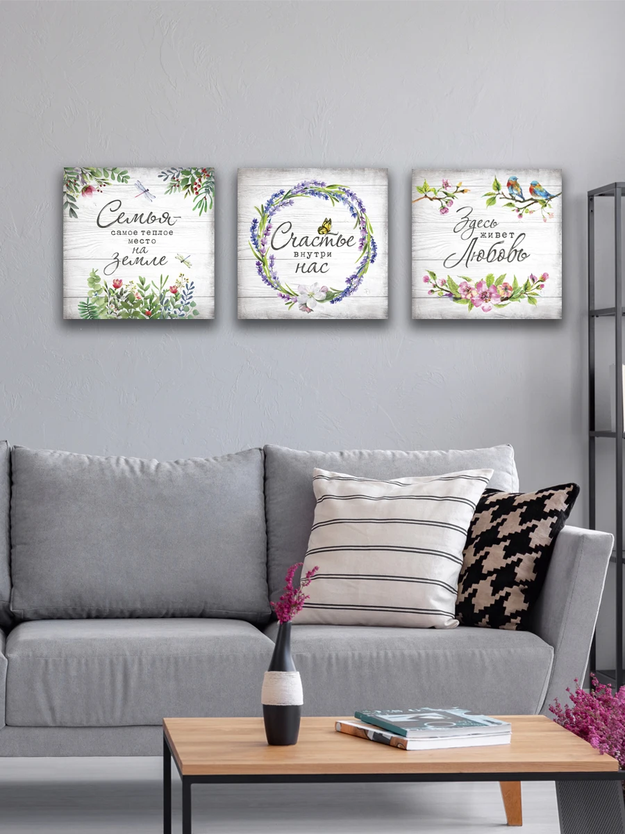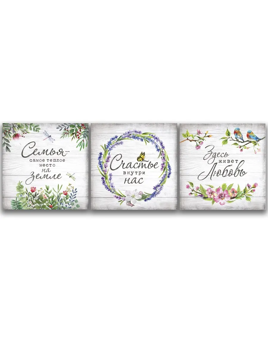 Картины на холсте LOFTime 3 шт 30Х30 ЛЮБОВЬ СЧАСТЛИВОЕ МЕСТО ЖИЗНЬ ...