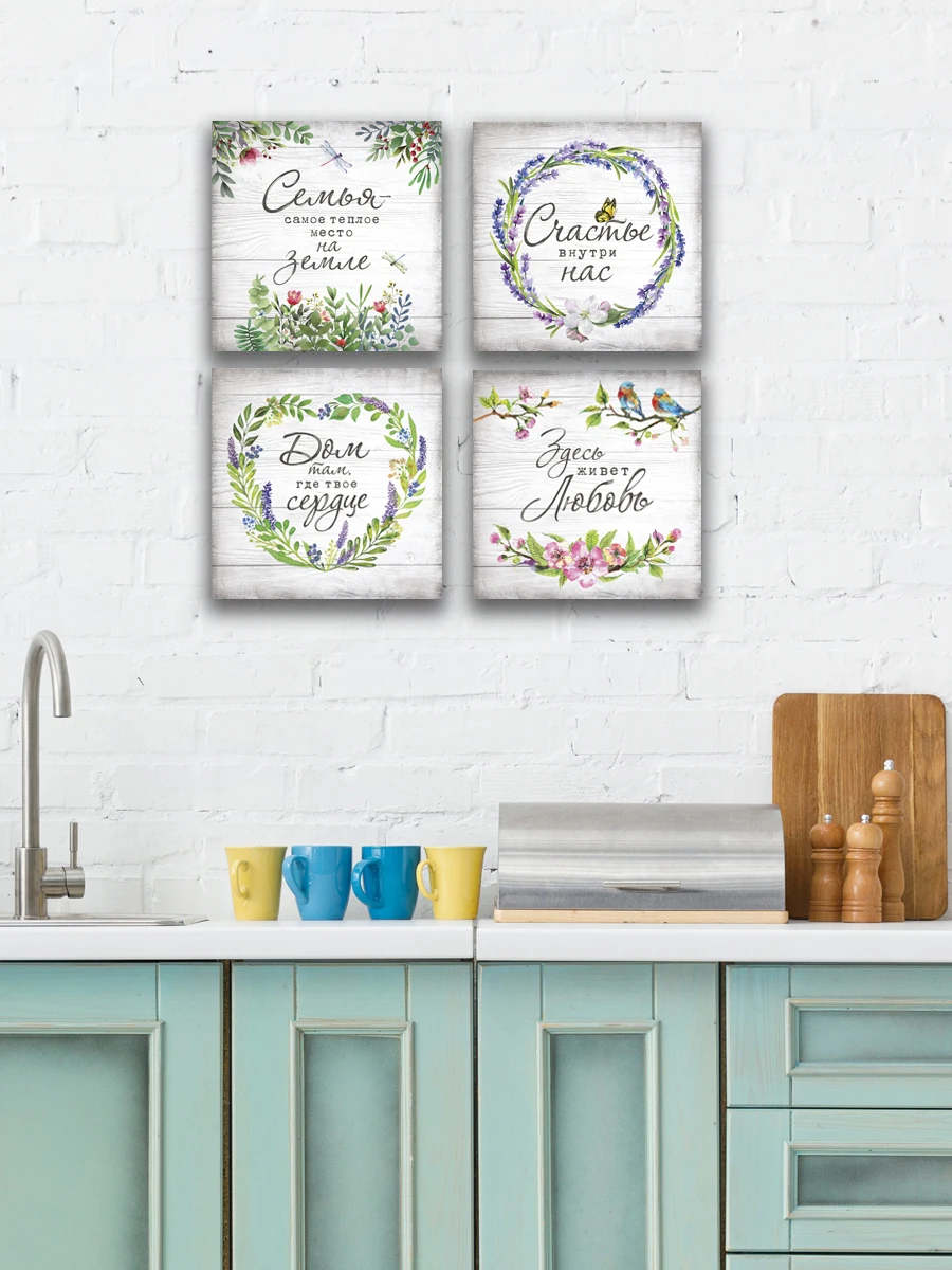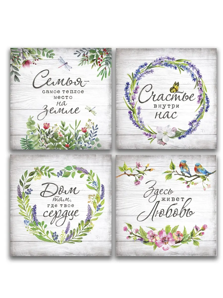 Комплект картин на холсте LOFTime 4 шт 30Х30 ЛЮБОВЬ СЕМЬЯ ДОМ СЧАСТЬЕ К-57-3030
