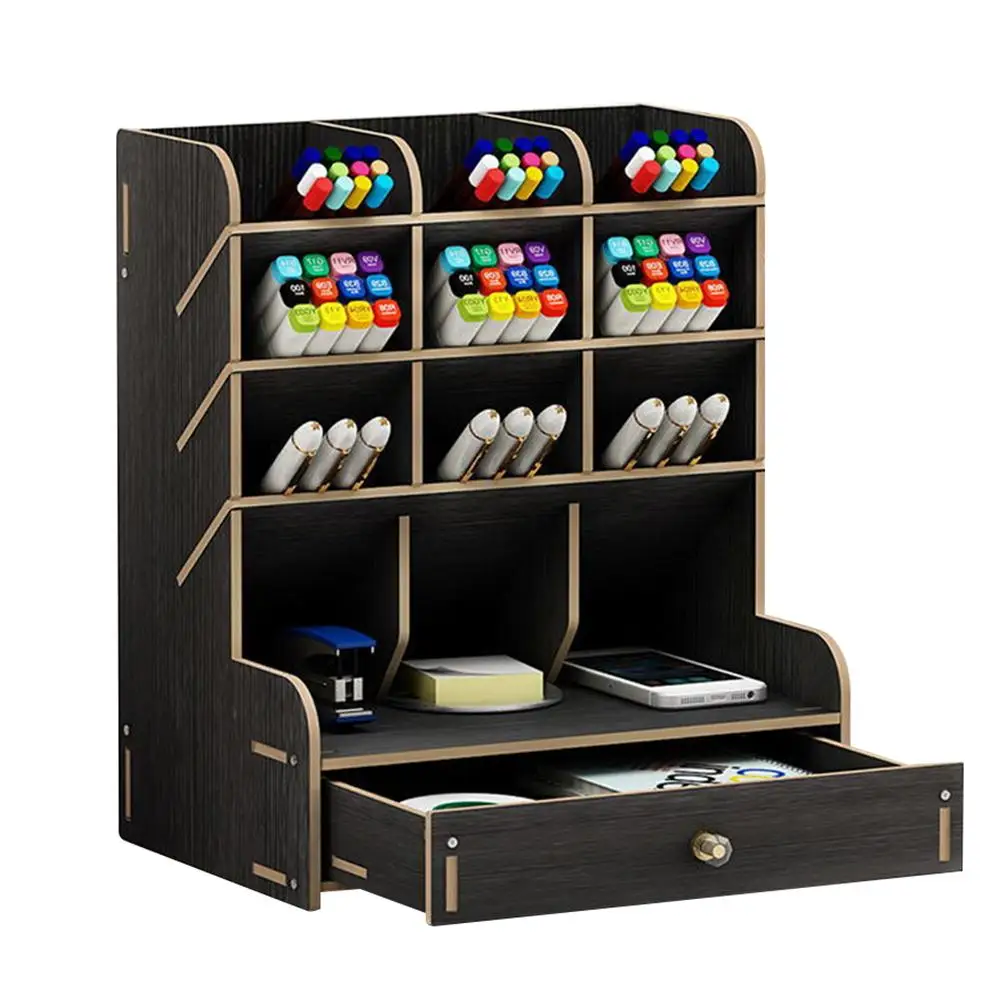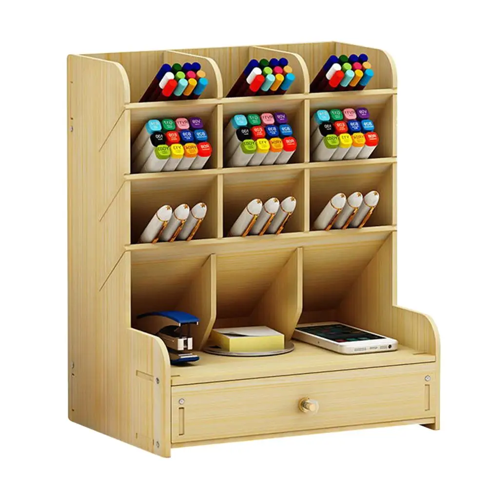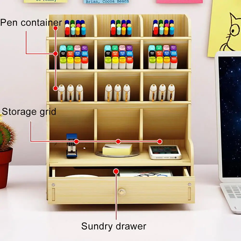 Деревянный многофункциональный настольный держатель для ручек с ящи...