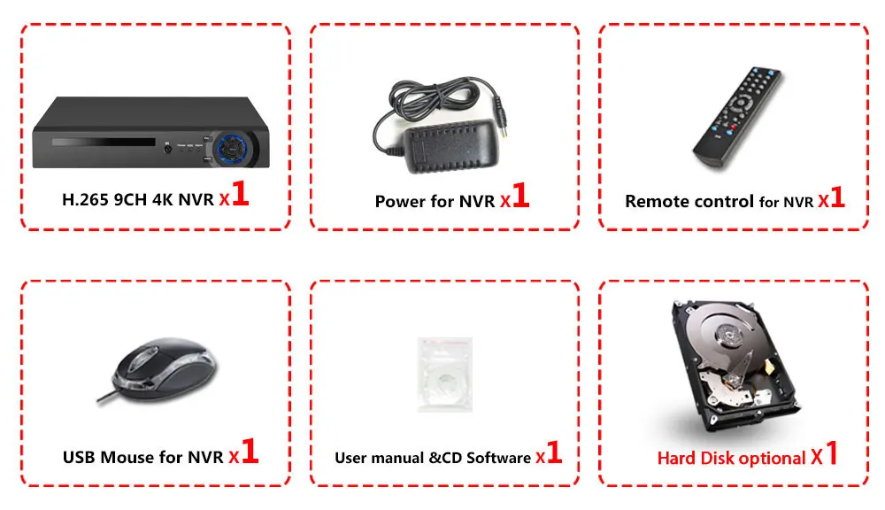 1 X сетевой видеорегистратор 4K 9ch NVR;