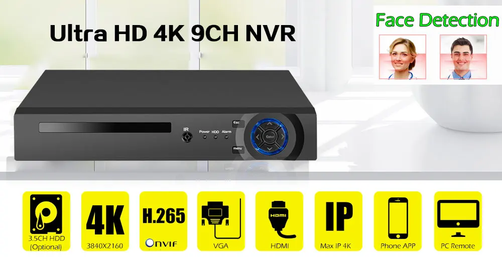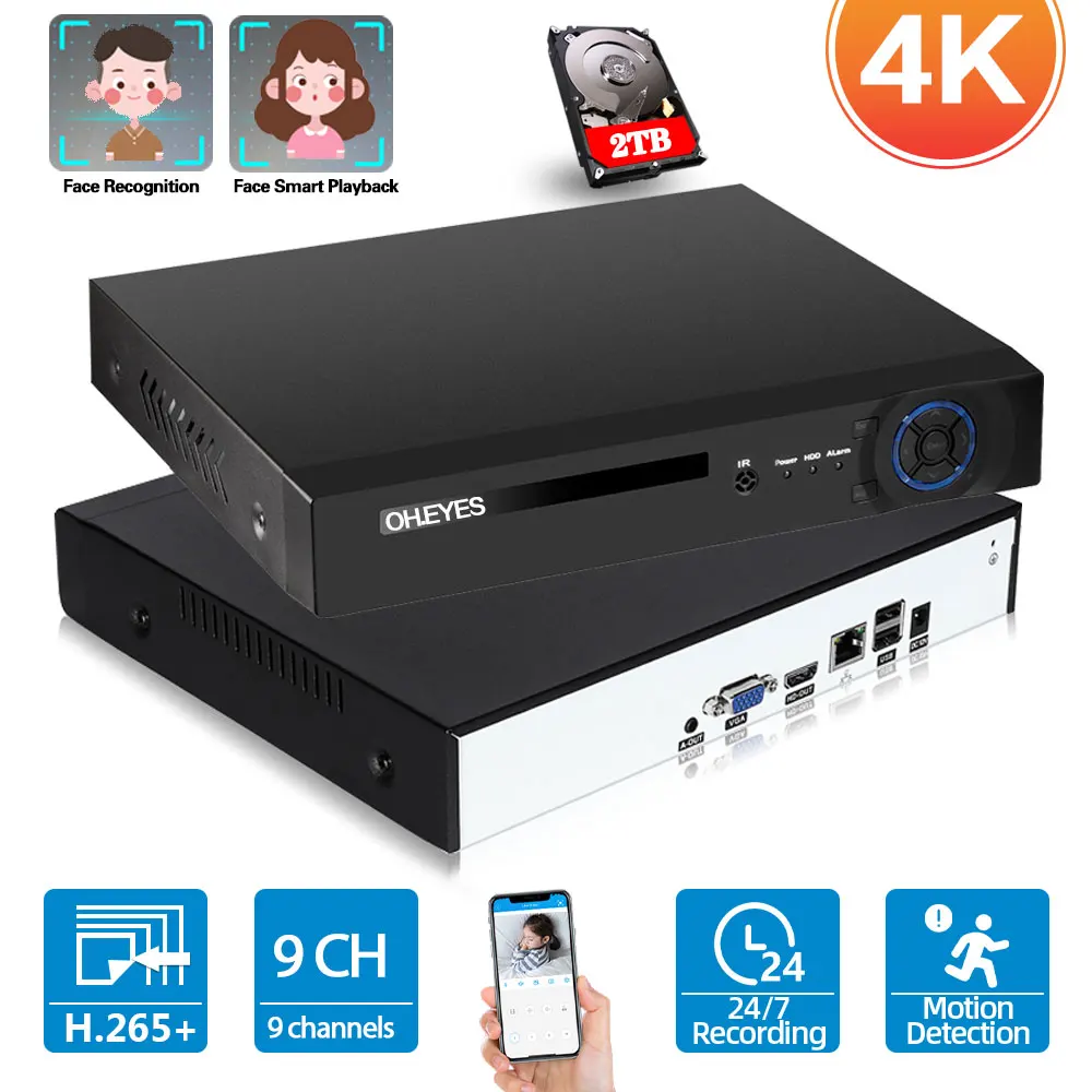 H.265 8-канального сетевого видеорегистратора 4K Сетевой Видео Регистраторы Поддержка WI-FI приложение просмотра Распознавание лиц 8CH NVR CCTV видеонаблюдение Регистраторы 9CH
