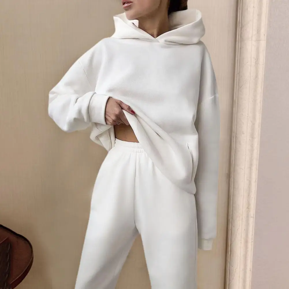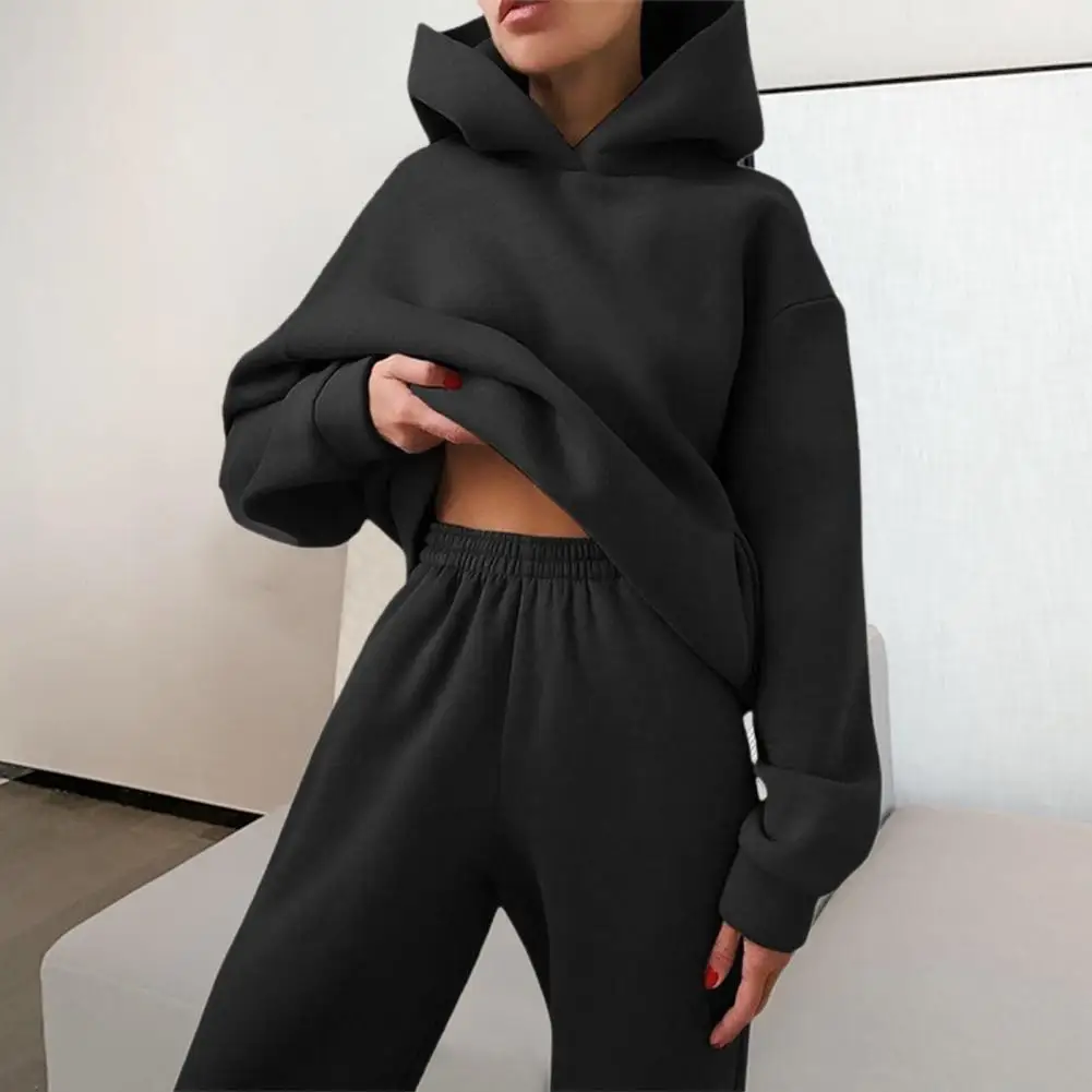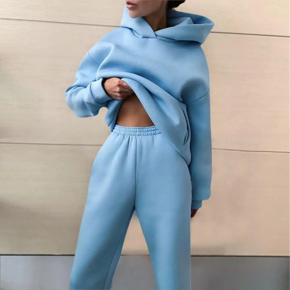Комплект из двух предметов, повседневный флисовый спортивный костюм, женские зимние комплекты 2021, толстовка с капюшоном и длинным рукавом, спортивные брюки, женский костюм