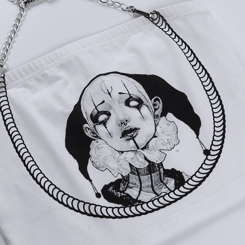 Женский топ с открытой спиной Y2K, белый облегающий топ в стиле панк с цепочкой и готическим принтом, уличная одежда в стиле хип-хоп, летние укороченные топы