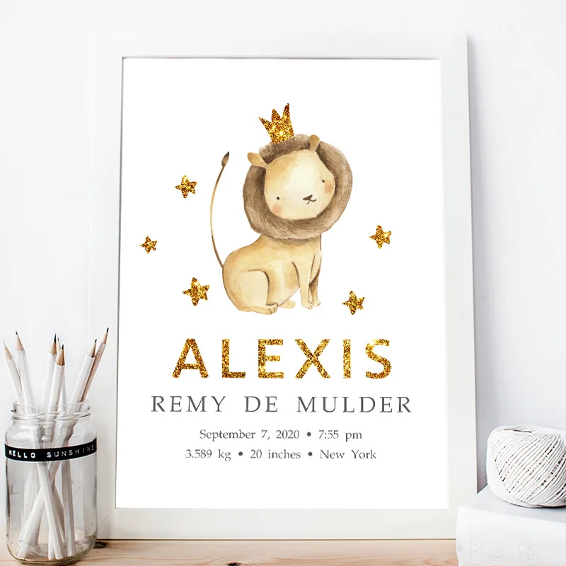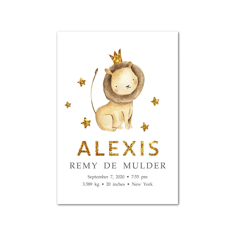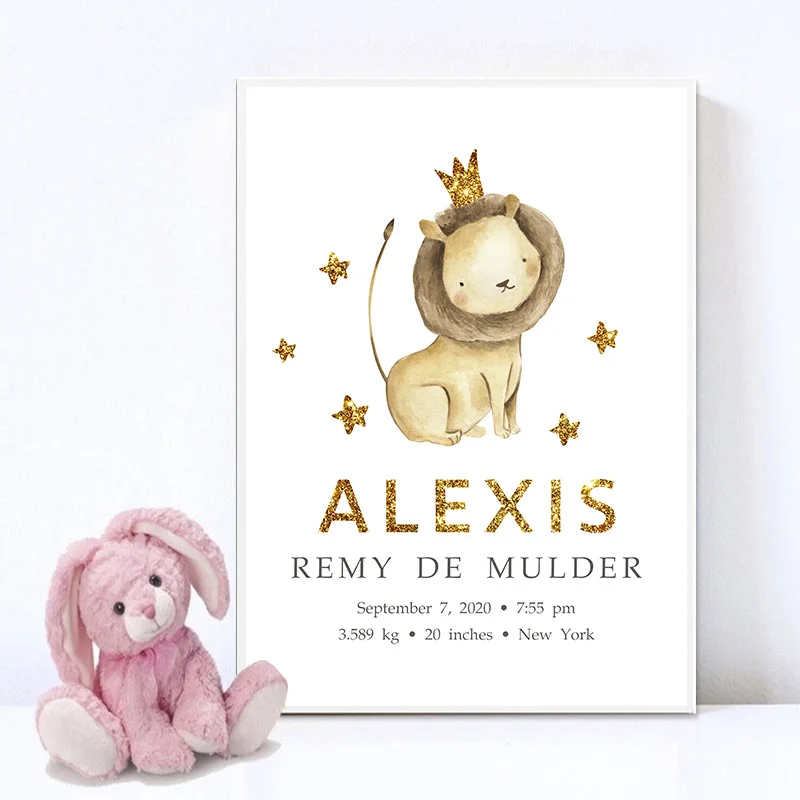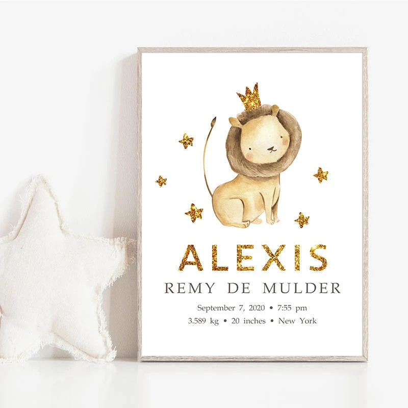 Рождение ребенка Пользовательские Плакат Lion детская печать на холсте минимализм настенная живопись Nordic детское украшение картину мальчик Украшения в спальню