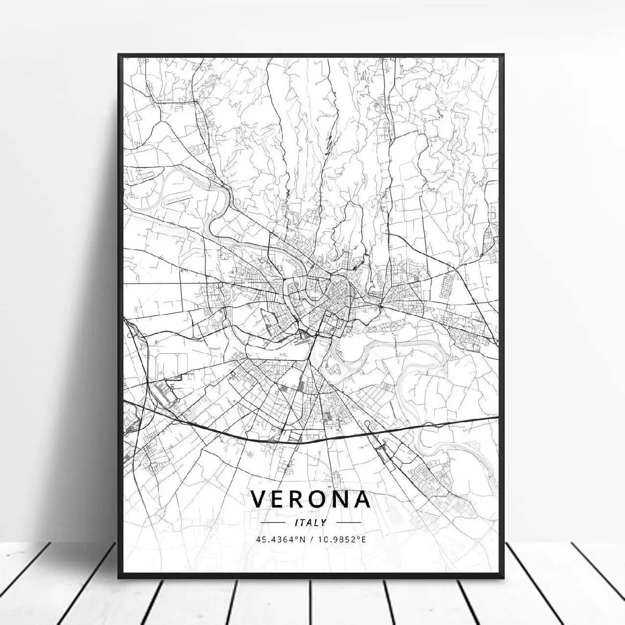 Hd Печать Болонья фоггия Неаполь падуа Турин Верона Италия карта холст искусство постер настенная живопись рамка для домашнего декора