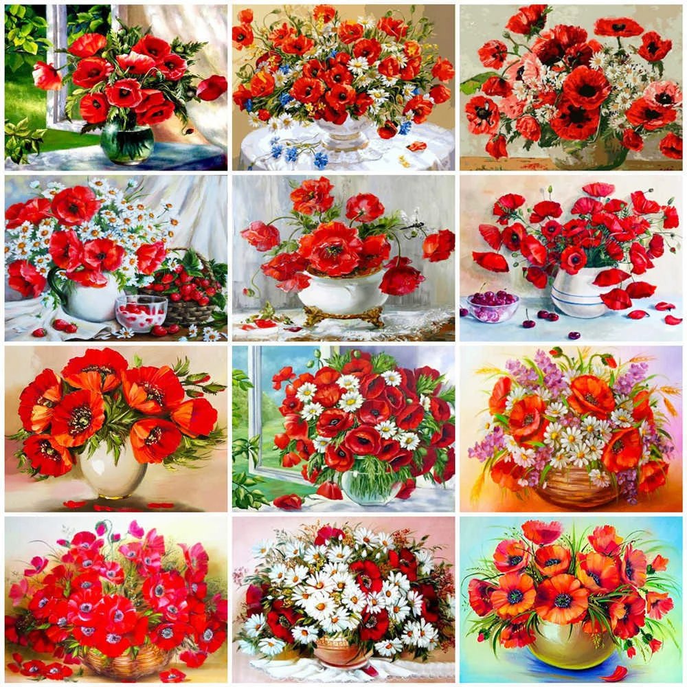 HUACAN картина по номерам цветок в вазе, украшение для дома, краска по номерам, Мак, акрил, уникальный подарок, рисование на холсте