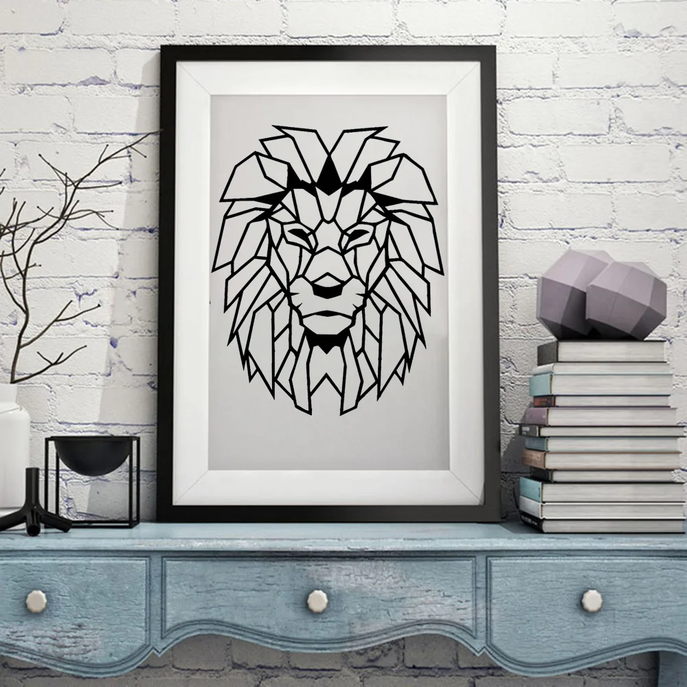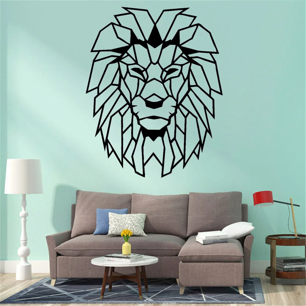 Виниловая наклейка на стену, с геометрическими предметами, голова льва, настенная наклейка с животным, для украшения детской комнаты