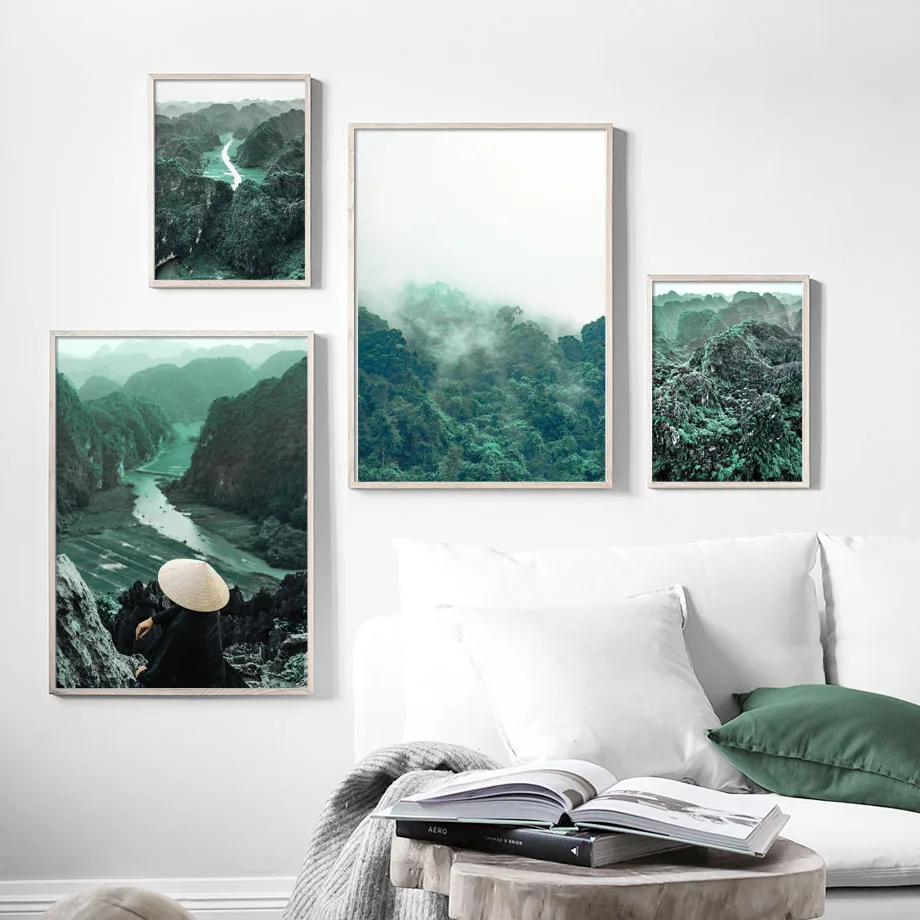 Зеленый лес трава водопад суккуленты художественная стена с цитатой...
