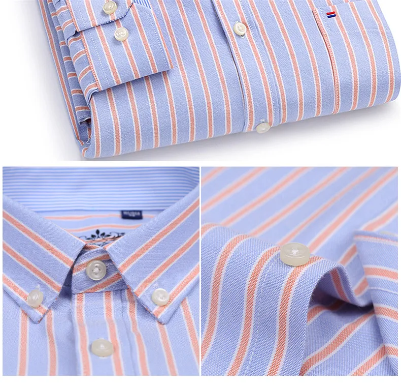 Полосатая оксфордская ткань, деловые мужские повседневные рубашки, ...