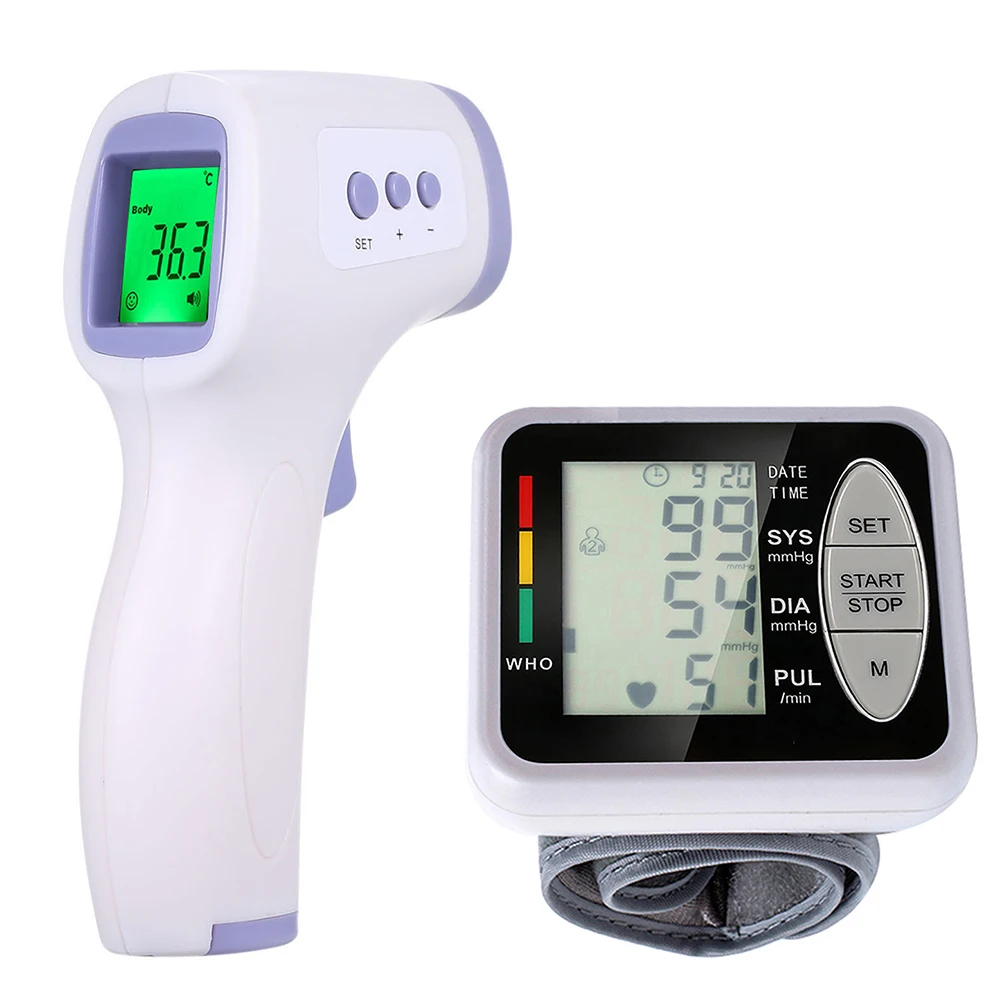 Портативный оксиметр на запястье, электронный сфигмоманометр, монитор артериального давления, тонометр + Бесконтактный Инфракрасный цифровой термометр