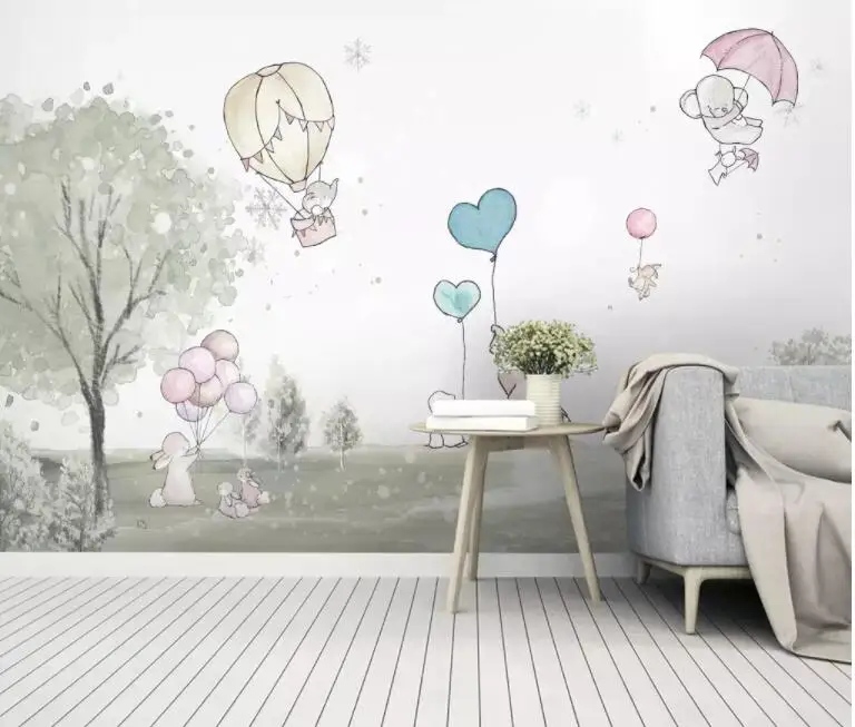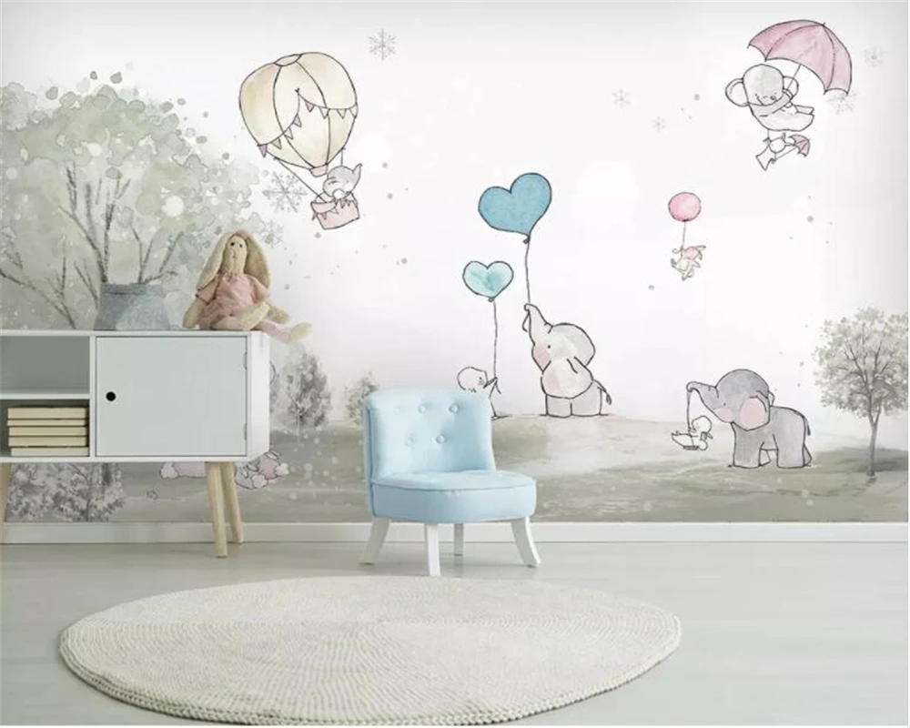 Самоклеящиеся 3D-обои на заказ, милый слон из мультфильма мультяшный медведь, воздушный шар, животное, комната, фон для стены, водонепроницаемый