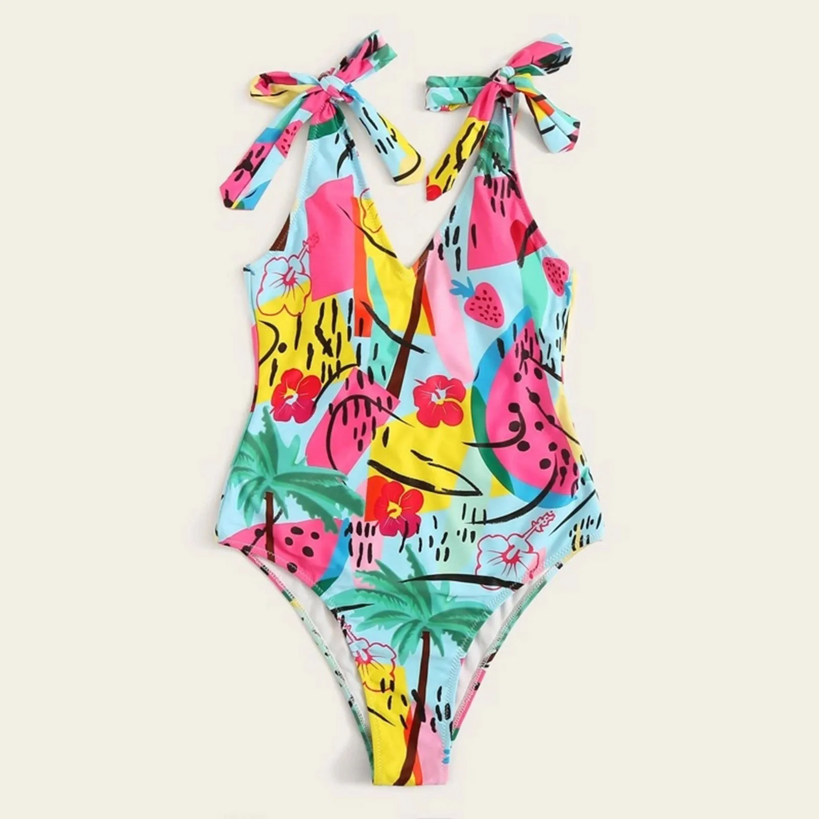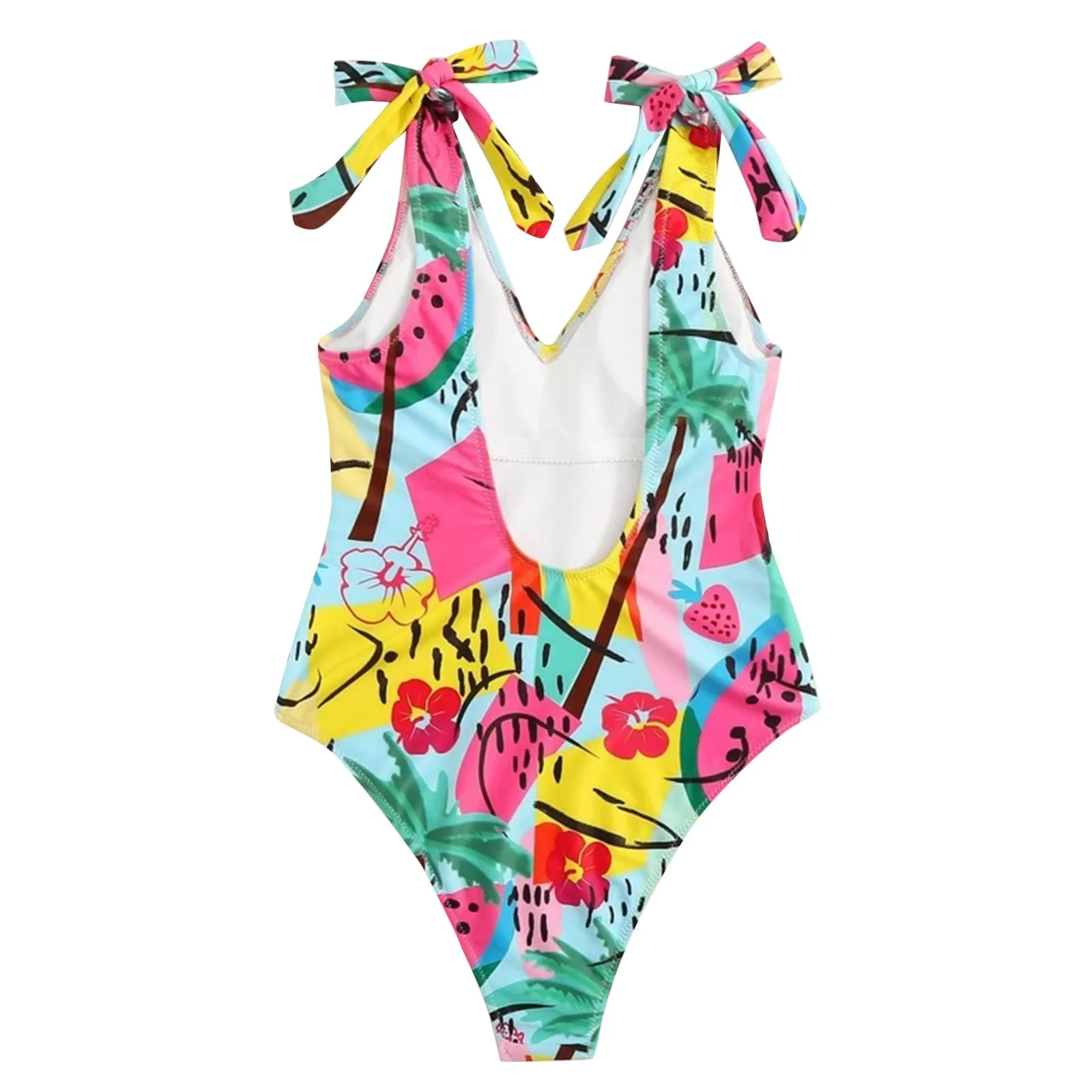 Для женщин однотонные Цвет цельнокроеный купальный костюм для женщин с принтом арбуз, с глубоким v-образным вырезом, сексуальные, украшенные пряжкой бикини женский бандажный купальник бикини