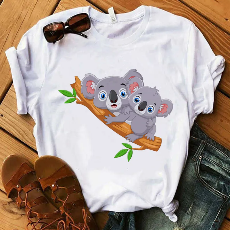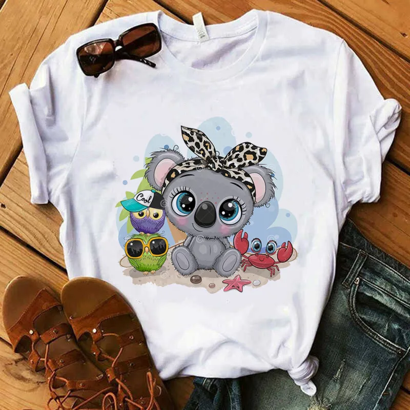Футболка женская с принтом коала, милая мультяшная одежда в стиле Х...