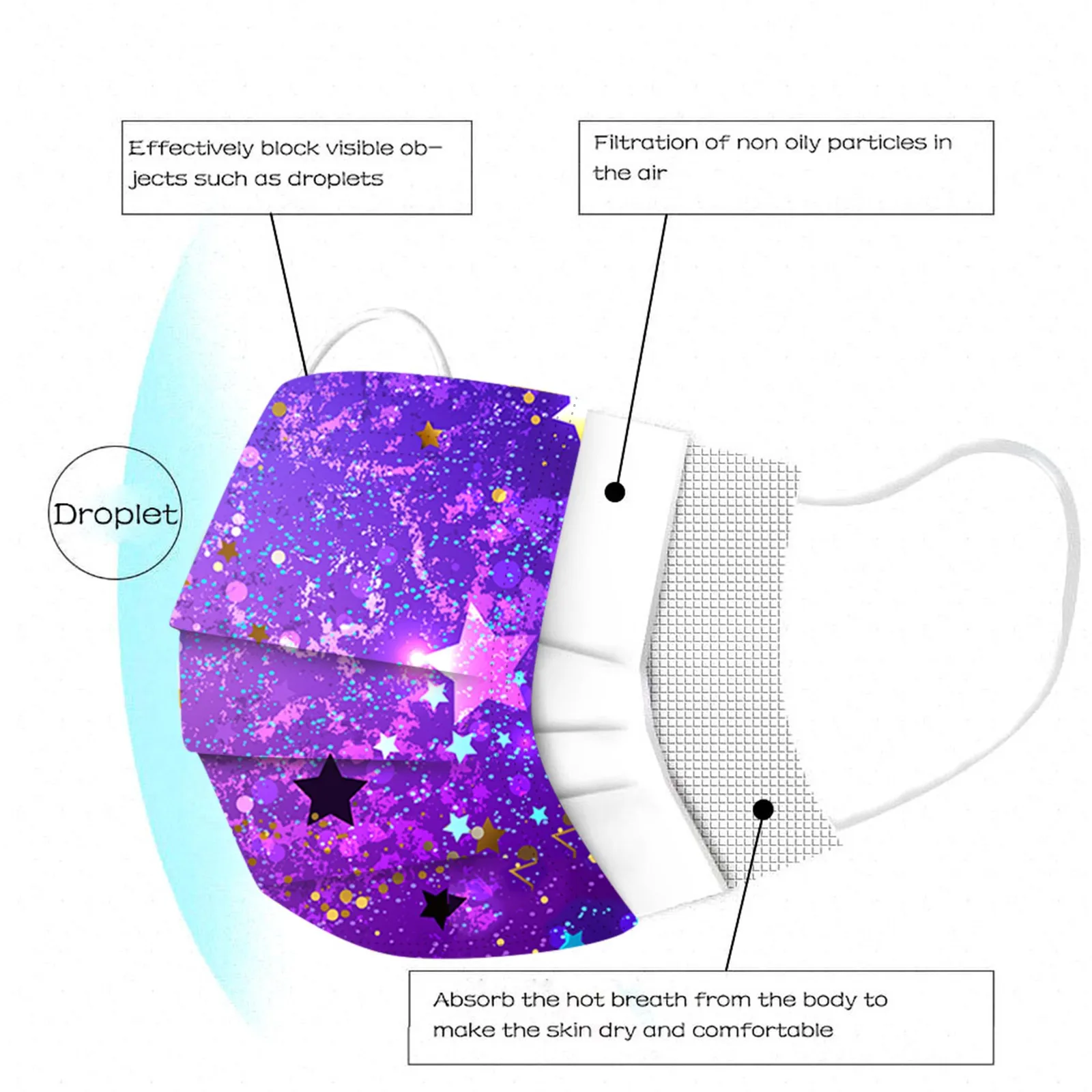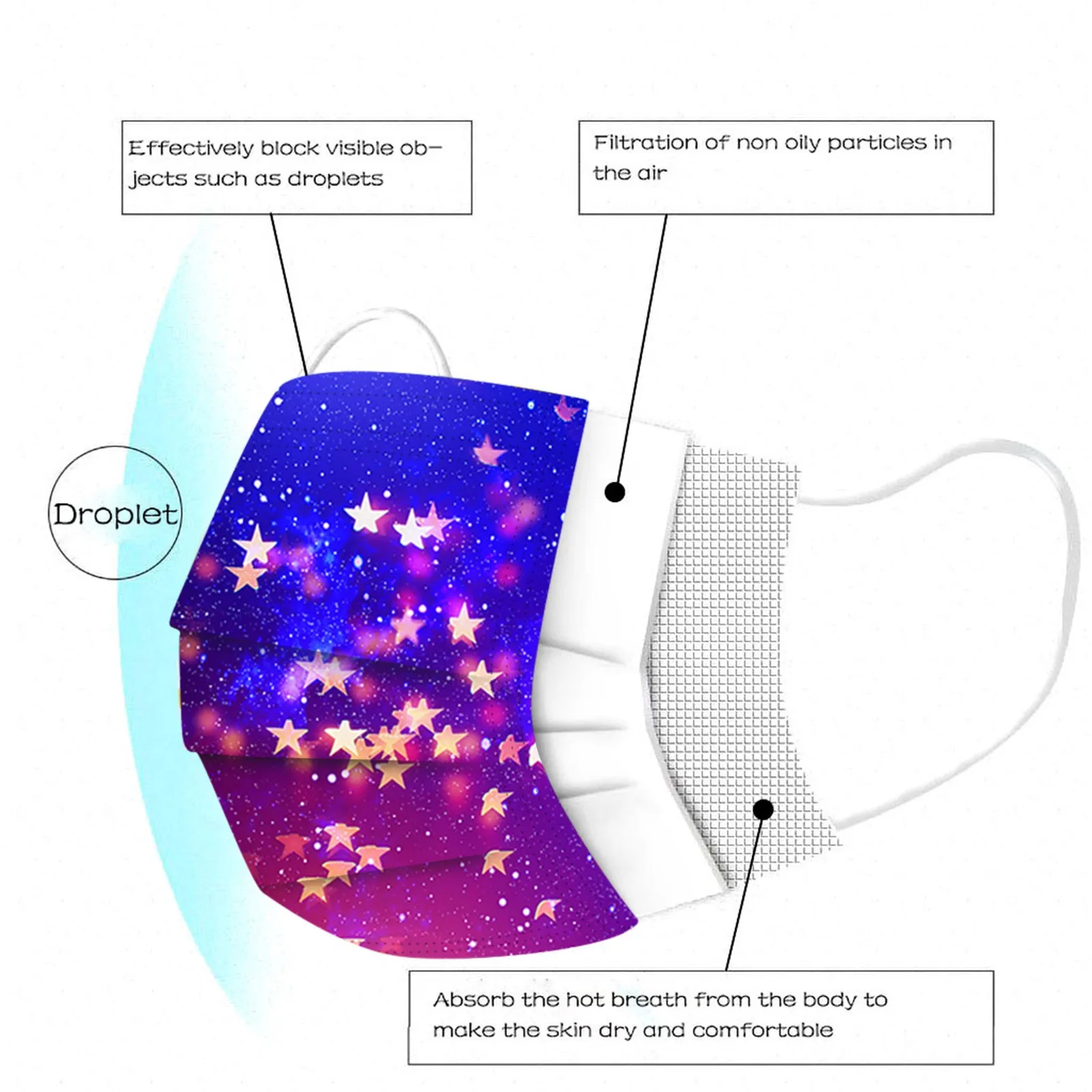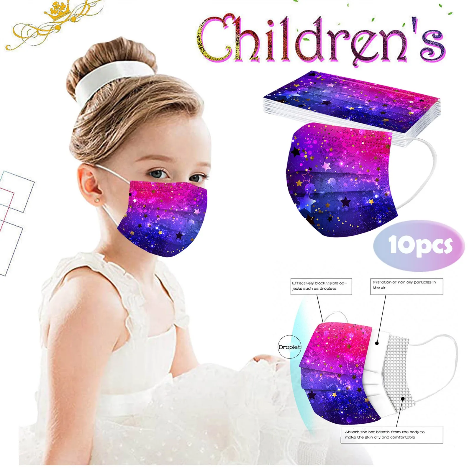10 шт, детское нижнее белье с принтом звездное небо одноразовая маска для лица 3 слоя нетканый защитный маски вареный с открытым носком Earloops маски