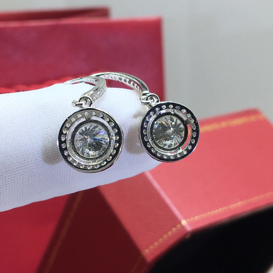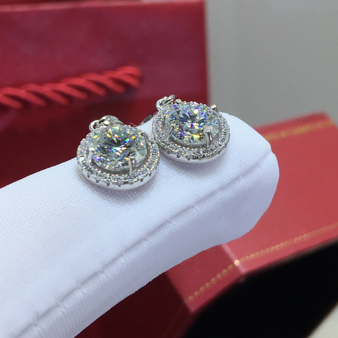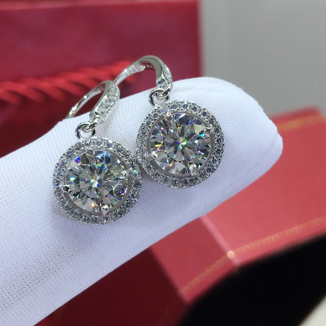 Серебро 925 Оригинальный Всего 2 карат алмазов тест последние круглой бриллиантовой огранки D Цвет Муассанит висячие серьги для женщин Серьги с драгоценными камнями