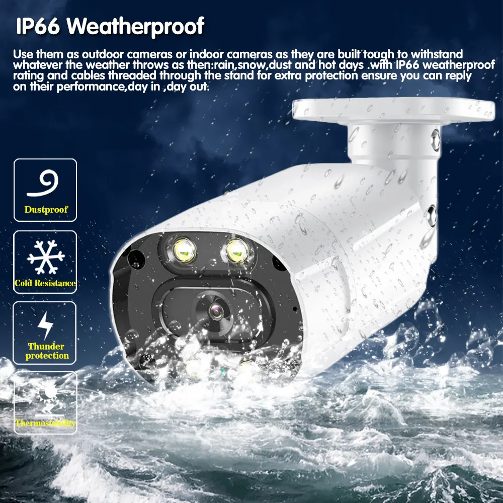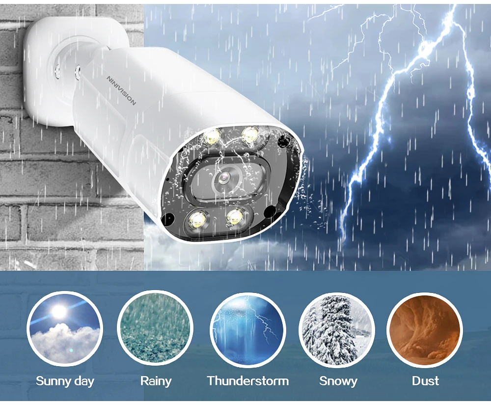 Используйте их в качестве наружных камер или внутренних камер, так как они построены жестко, чтобы выдерживать любую погоду: дождь, снег, пыль и жаркие дни. С защитой от атмосферных воздействий IP66 и кабелями, проходящими через подставку для дополнительной защиты, гарантируем, что вы сможете ответить на их производительность, день в день. Наша камера имеет сверхпрочный металлический корпус, профессиональный IP66, устойчивый к атмосферным воздействиям, обеспечивая стабильную производительность как внутри, так и снаружи.