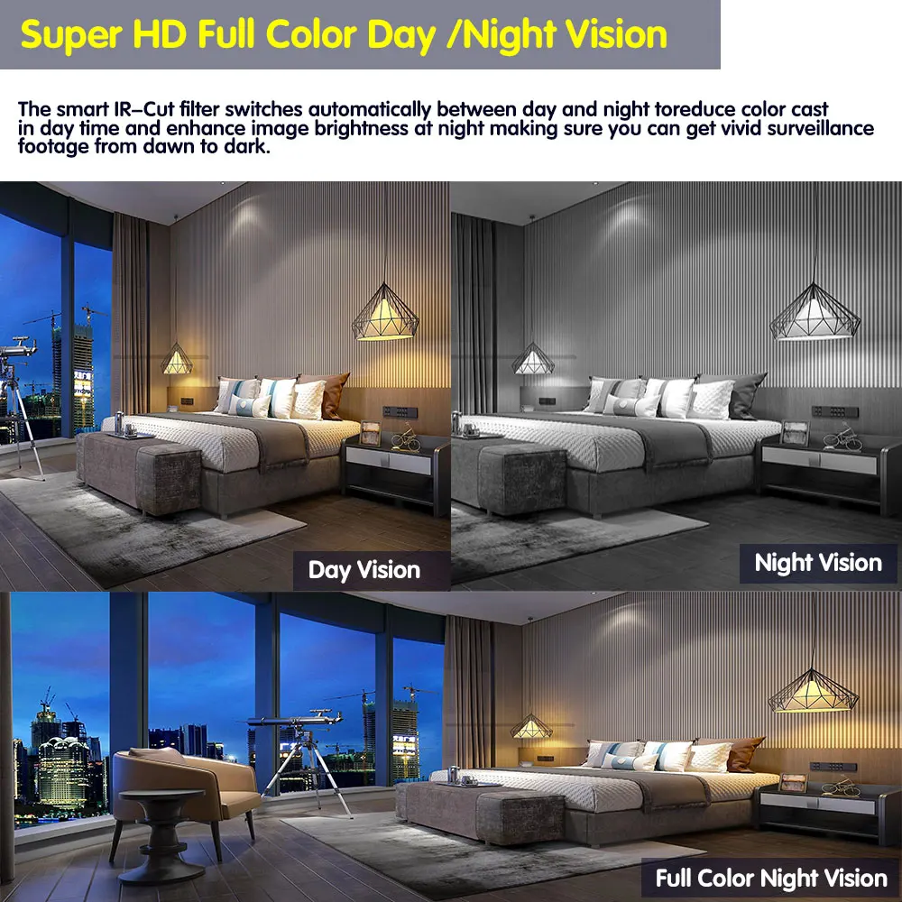 Умный фильтр, отсекающий ИК-спектр автоматически переключается между днем и ночью, цвет toreduce в дневное время и повышает яркость изображенияВ ночное время вы можете получить яркие кадры наблюдения от рассвета до темноты.