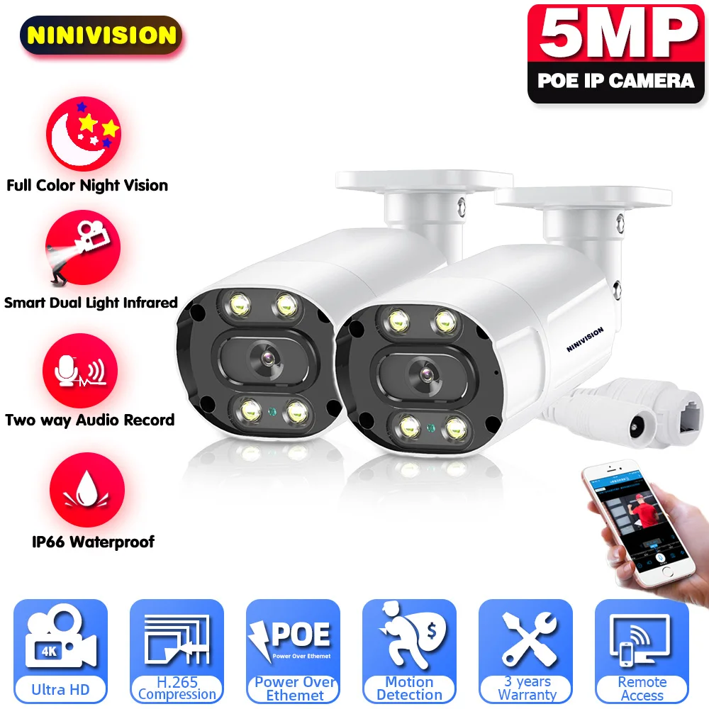 NINIVISION полноцветная камера ночного видения 4K 8MP 5MP наружная двухсторонняя аудио POE CCTV IP камера видеонаблюдения HD 25PFS @ 5MP Bullet IP камера