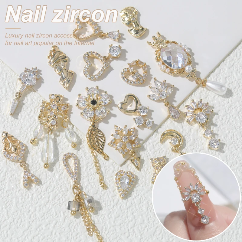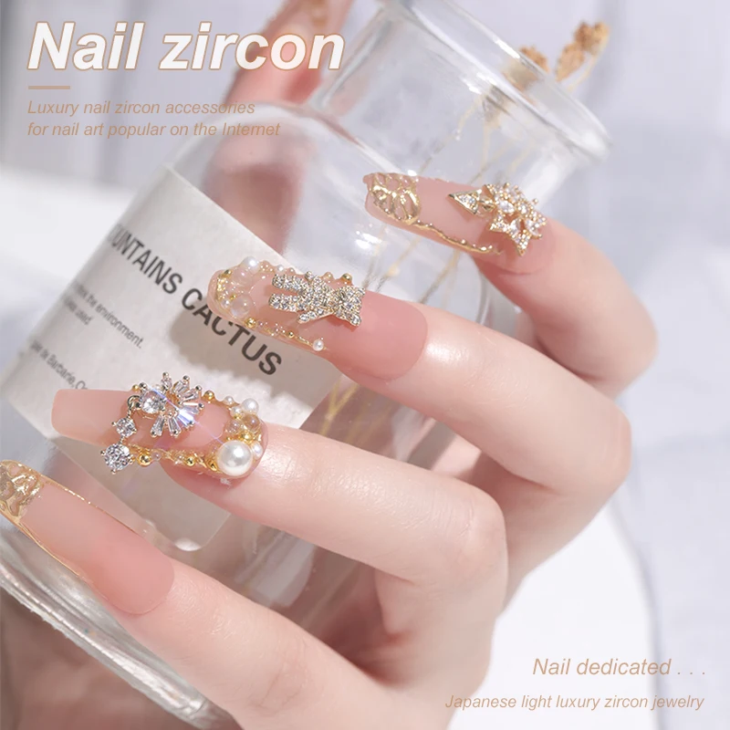2 шт., металлические ювелирные украшения для ногтей из циркона