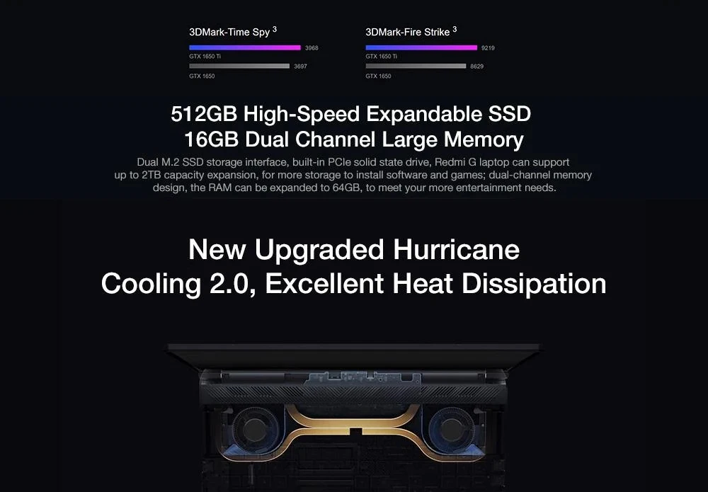 Xiaomi Redmi G игровой ноутбук 16,1 дюймов i5-10300H GTX1650Ti 16 Гб DDR4 512GB SSD 100% sRGB камера с подсветкой для ноутбука