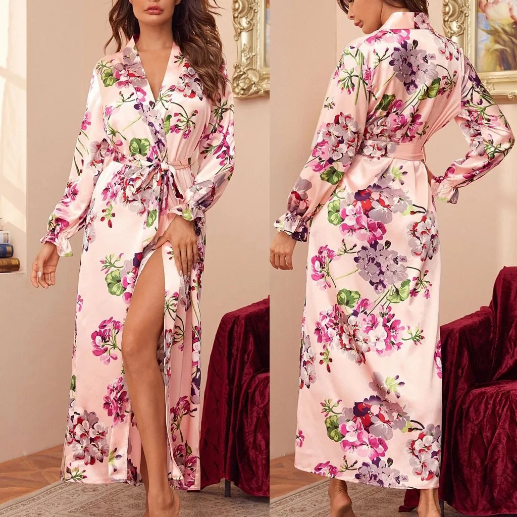Халат женский атласный с длинным рукавом, пикантный Шелковый банный однотонный, нижнее белье-кимоно, для подружки невесты, нижнее белье, одежда для сна, 40 #