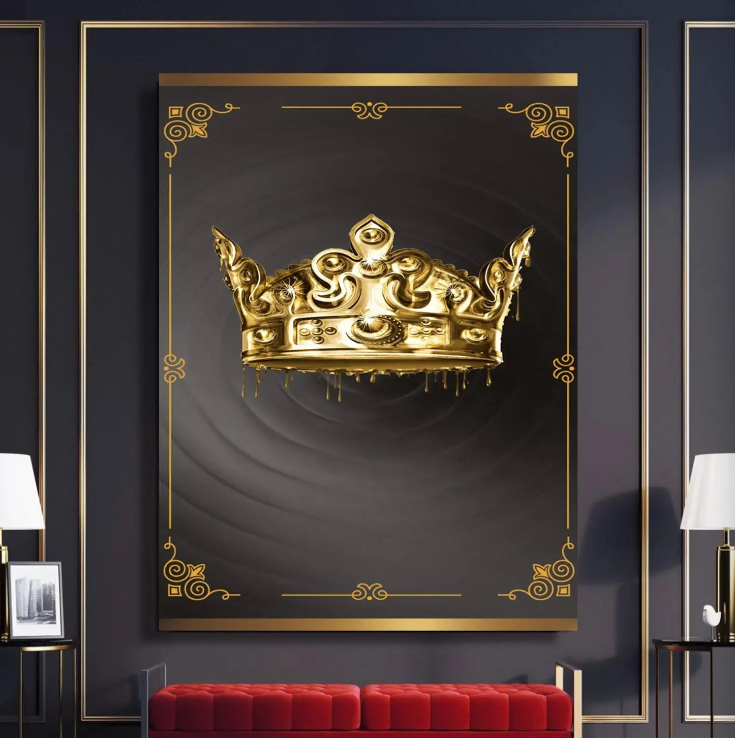 Картина на холсте, Декор для дома, корона, Золотая красивая картина, современный Печатный модульный черный постер для гостиной, Настенная картина, рамка