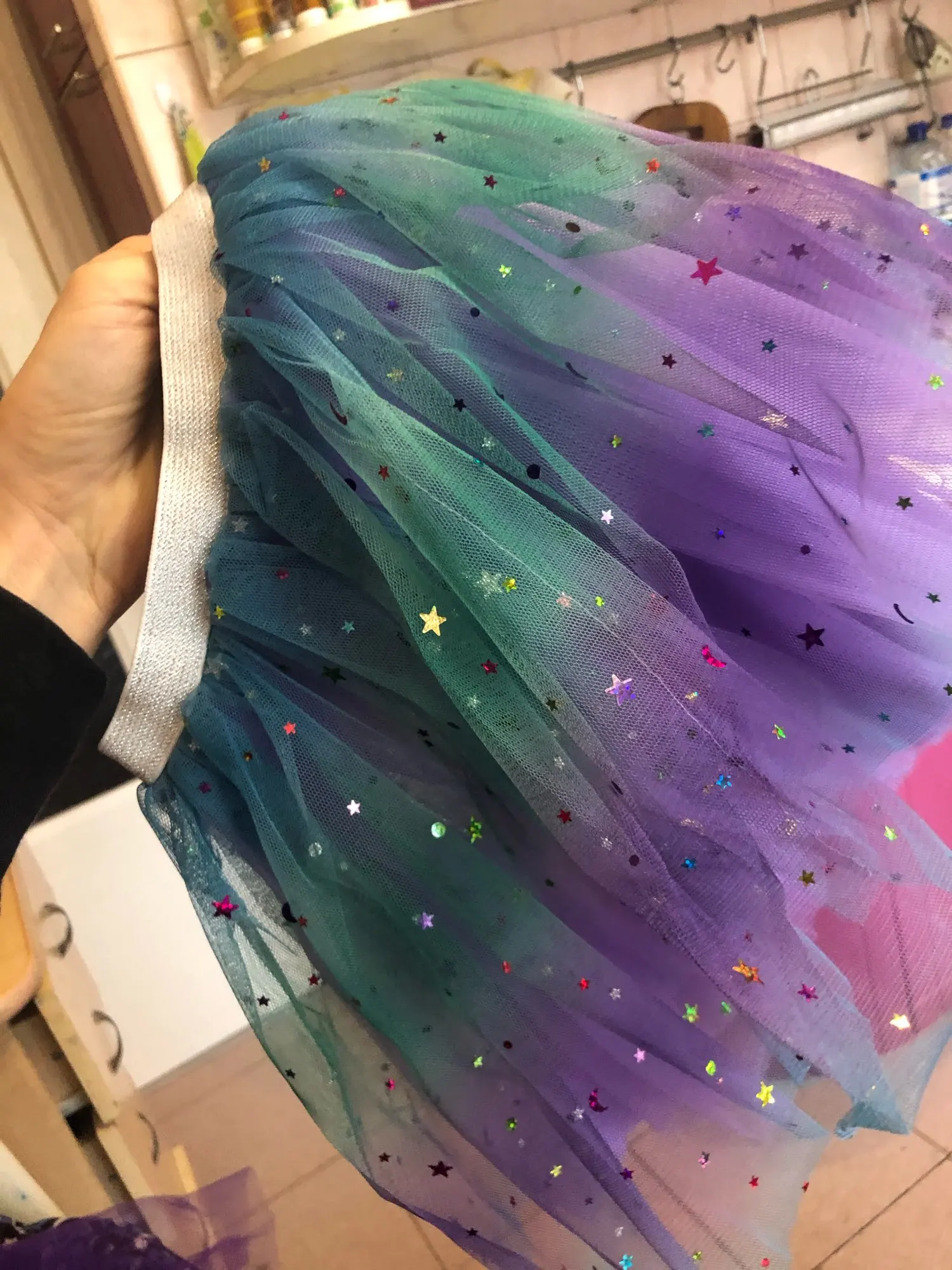 Вечерние балетные костюмы с юбкой-пачкой для маленьких девочек; Газовые радужные юбки со звездами и блестками