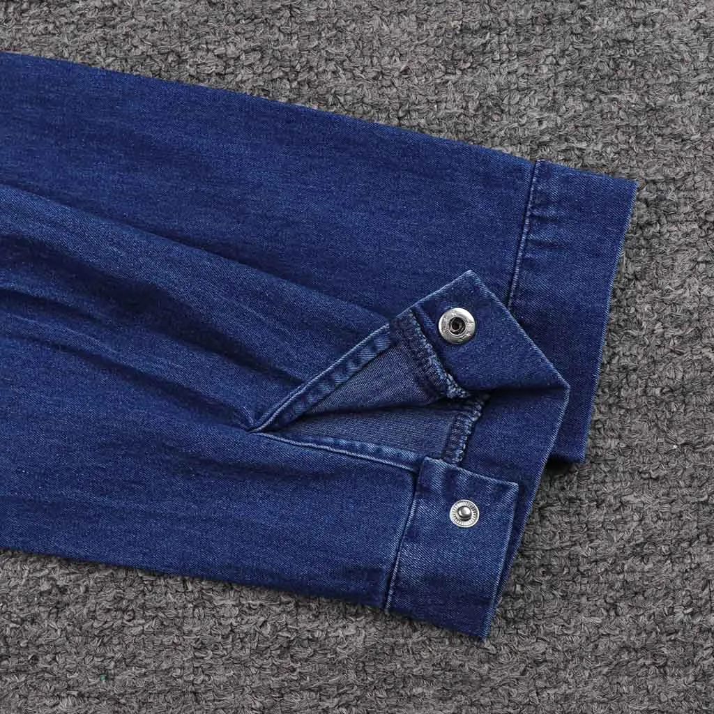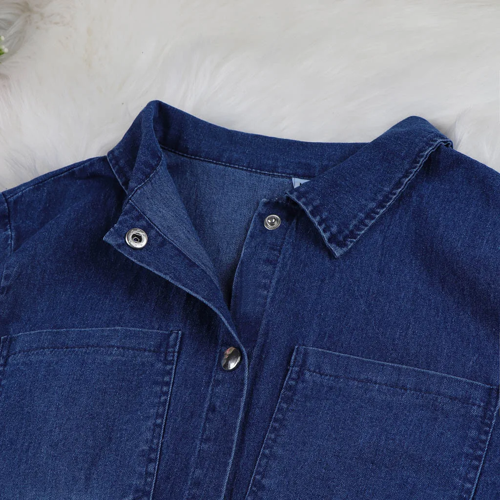 Женское летнее повседневное джинсовое платье с отложным воротником и длинным рукавом