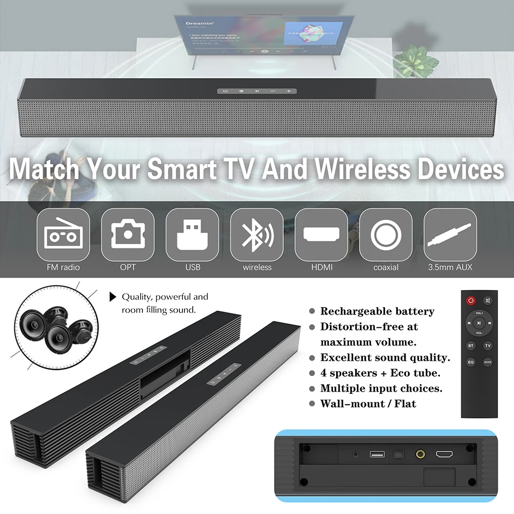 BS-18 беспроводной многофункциональный ТВ Саундбар Bluetooth 5,0 динамик линия в AUX U-диск RCA оптический fiberвход FM радио
