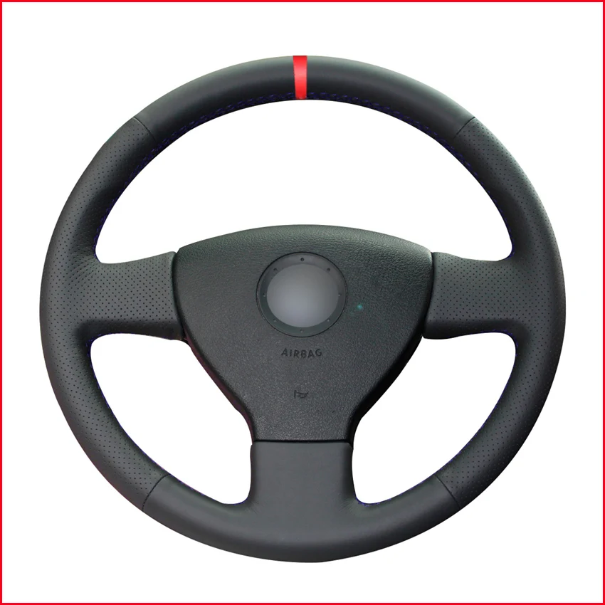 Черный ПУ Искусственная Кожа DIY красный маркер чехол рулевого коле...