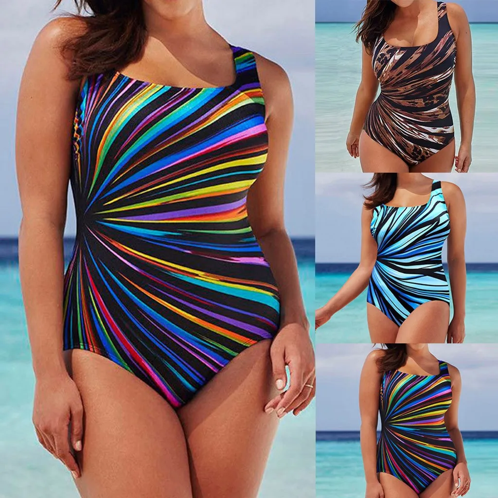 Купальник женский в полоску, комплект для плавания, бикини, монокини, комплект для плавания, большие размеры 5XL
