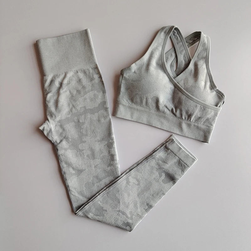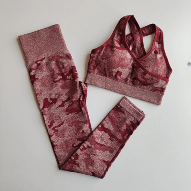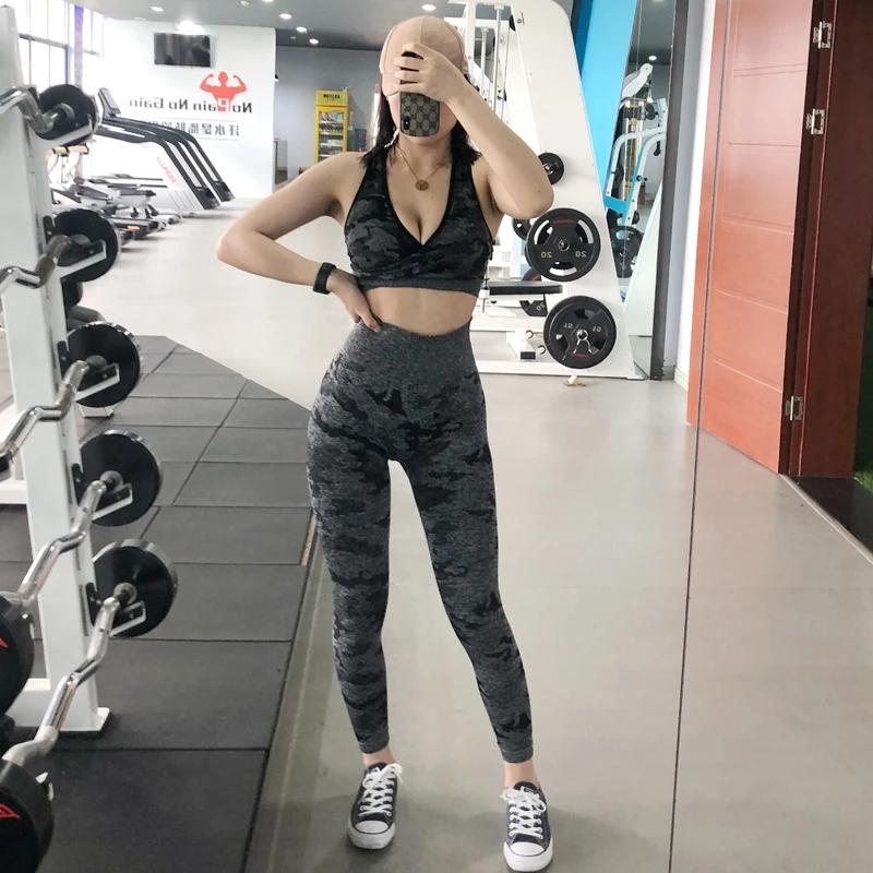 2 шт., камуфляжный спортивный комплект для йоги, леггинсы с высокой талией и спортивный бюстгальтер
