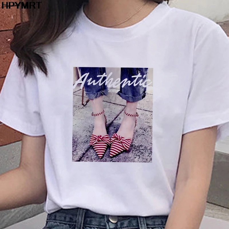 Футболка женская с принтом эстетичной обуви, модный топ с коротким рукавом и графическим принтом, в стиле 90-х, одежда в стиле Харадзюку