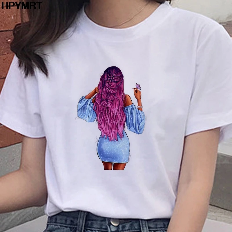 Футболка женская с мультяшным принтом, милая Дамская рубашка с граф...