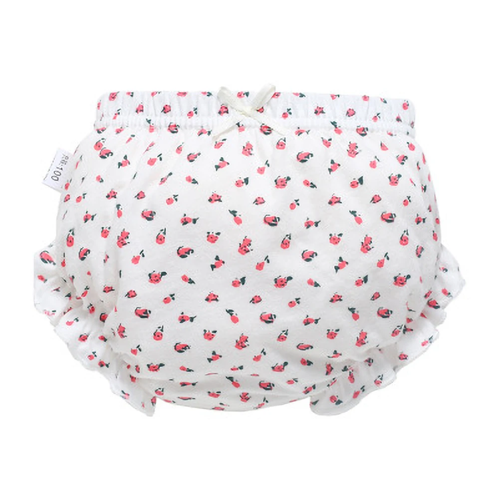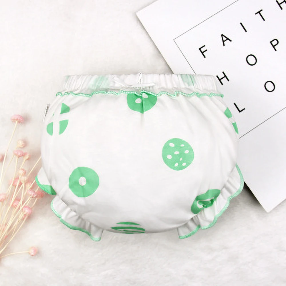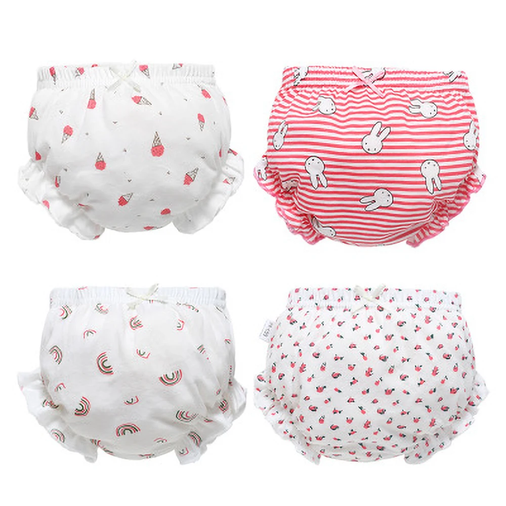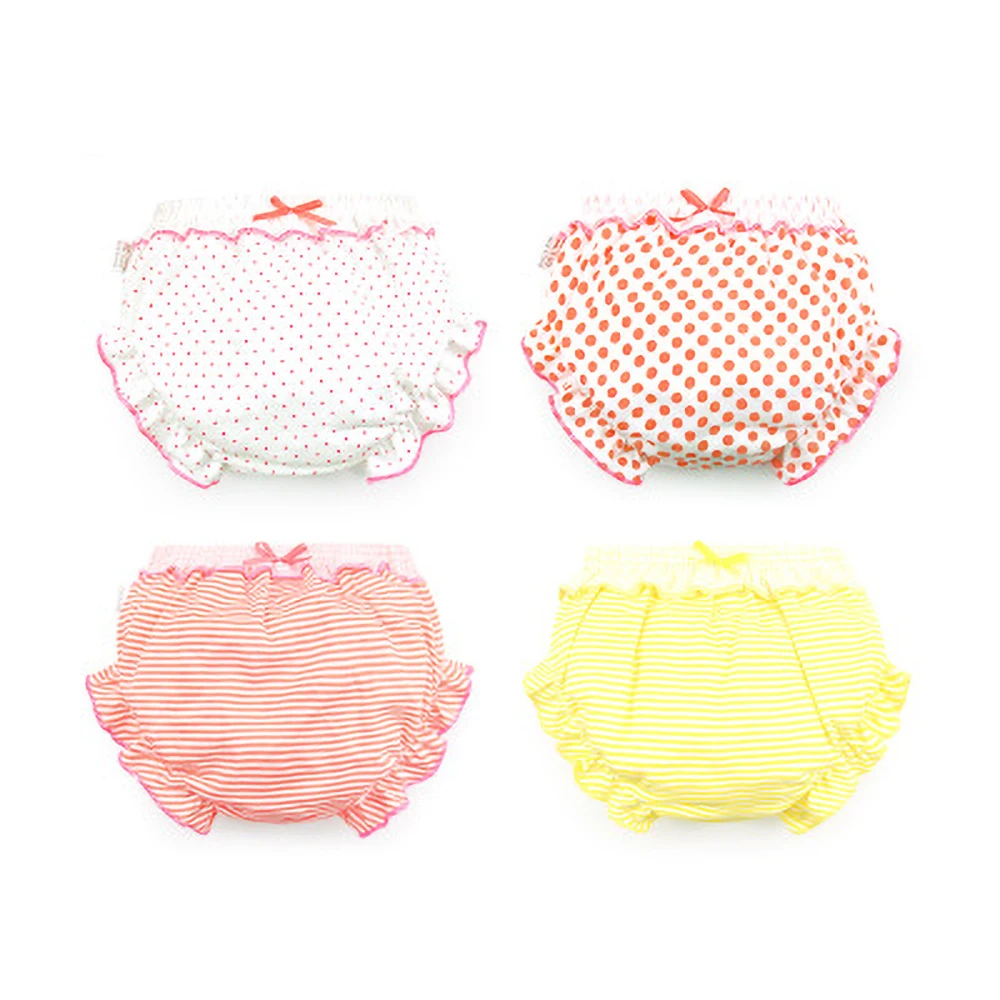 Детское нижнее белье, 4 шт. в упаковке, трусики из 100% хлопка, однотонные трусики с оборками для маленьких девочек, трусики в полоску в горошек для новорожденных 0-2 лет