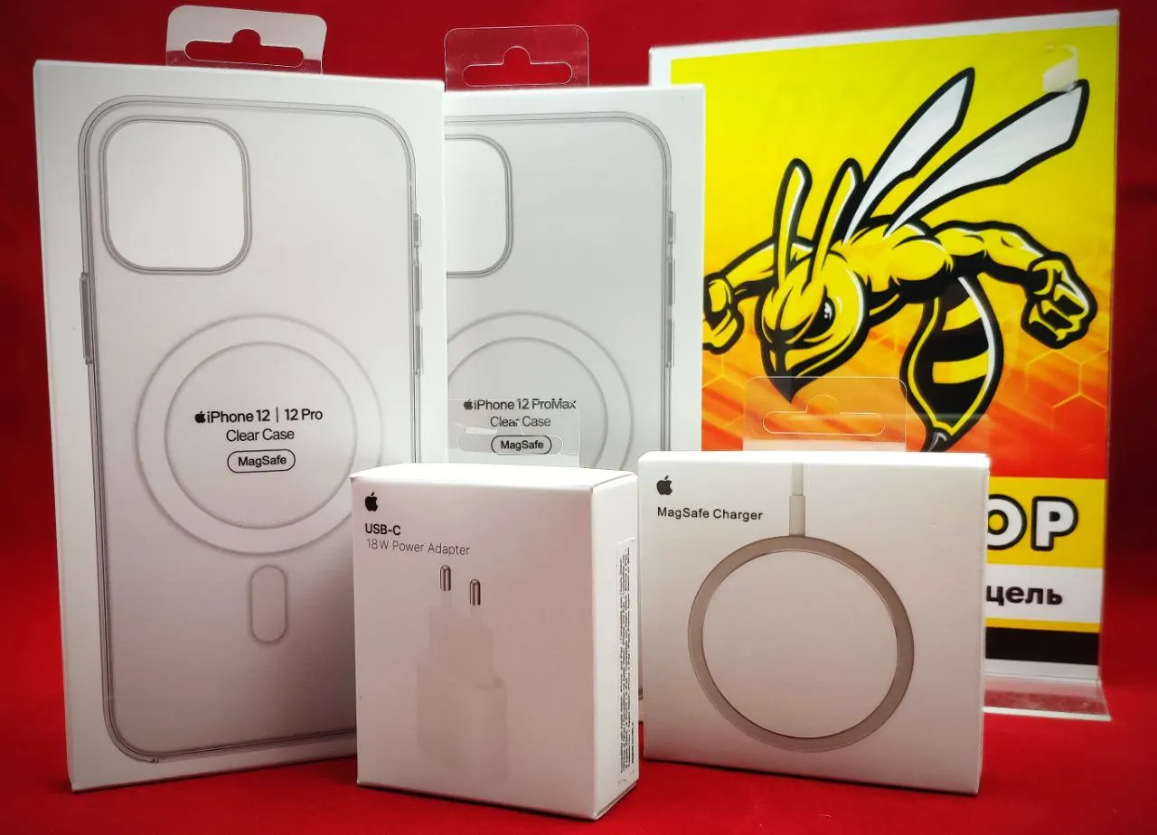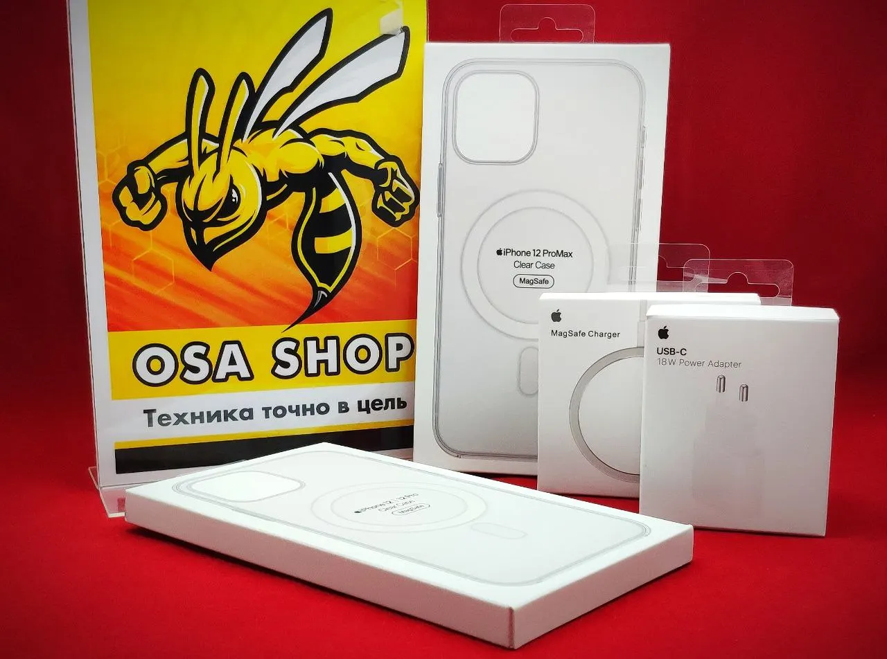 Комплект Зарядного устройства Apple iPhone 12/12Pro/12Pro MaxUSB-C Adapter 18WMagSafe Charger Apple iPhone 12/12Pro/12Pro MaxClear Case Apple iPhone 12/12Pro/12Pro Max